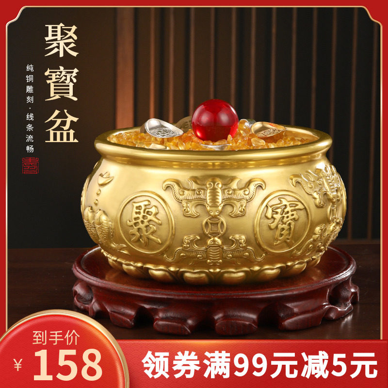 新品实心黄铜g八福聚宝盆摆件中式客厅家居办公室店铺柜台玄关工