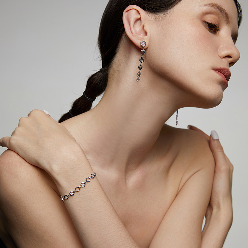 伊泰莲娜女士几何图案纯925银手链复古简约风腕饰