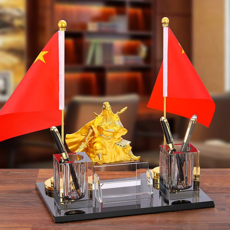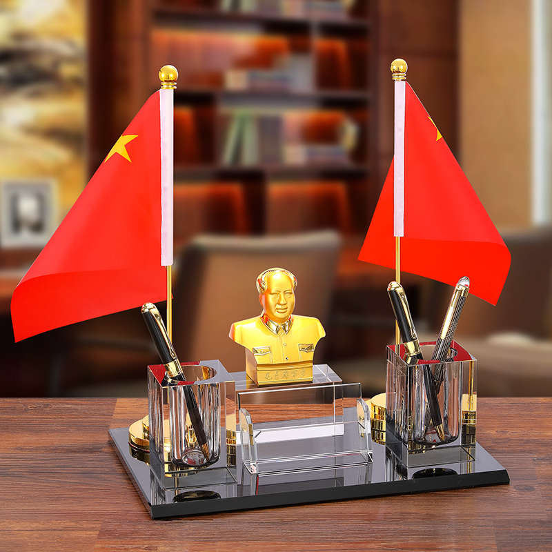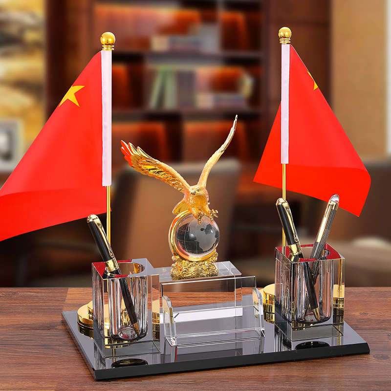 水晶笔筒桌面实用纪念品红旗商务送领导办公室桌面高档摆件网红收