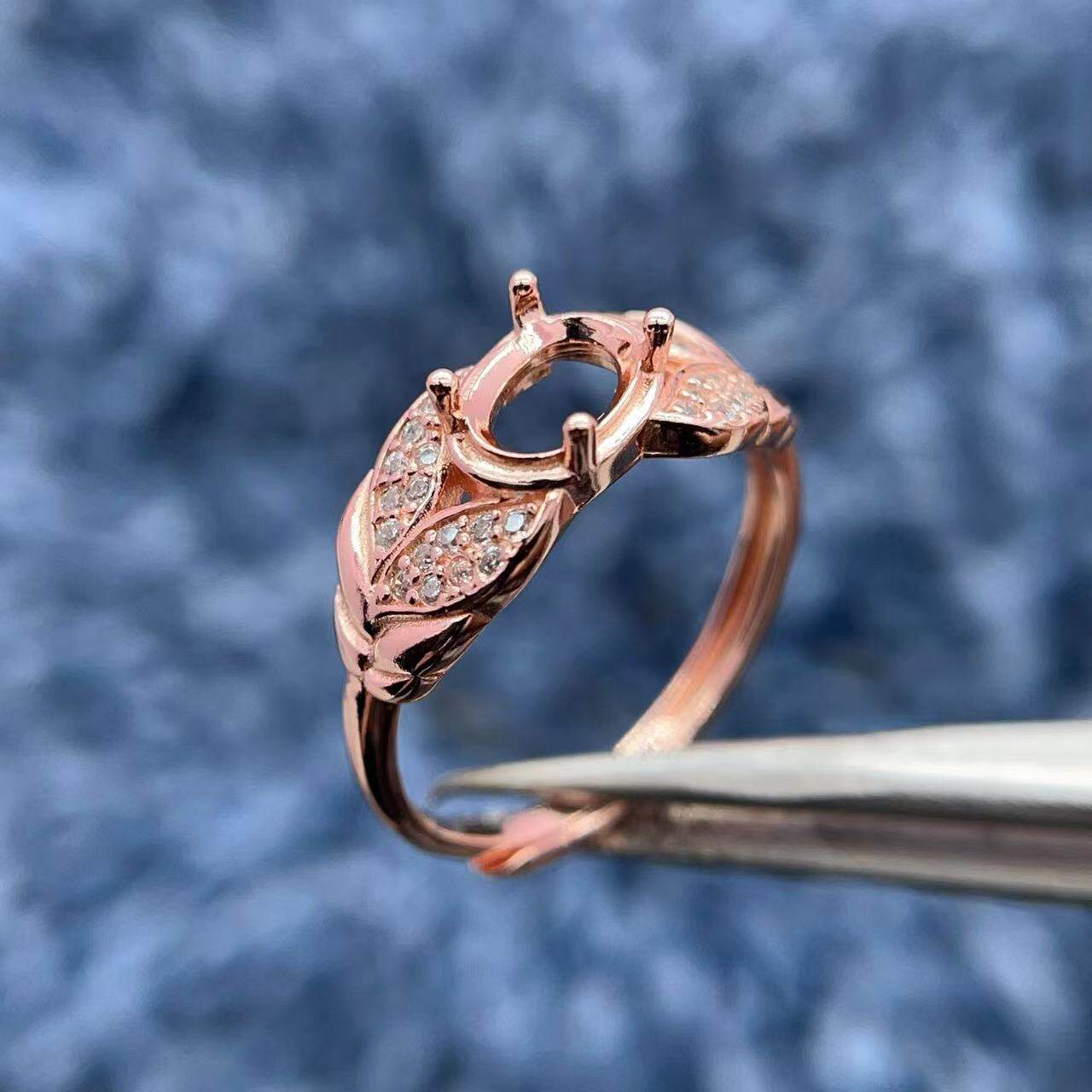 S925纯银戒指空托椭圆形5*7mm奢华叶片款式满钻闪亮气质时尚戒指