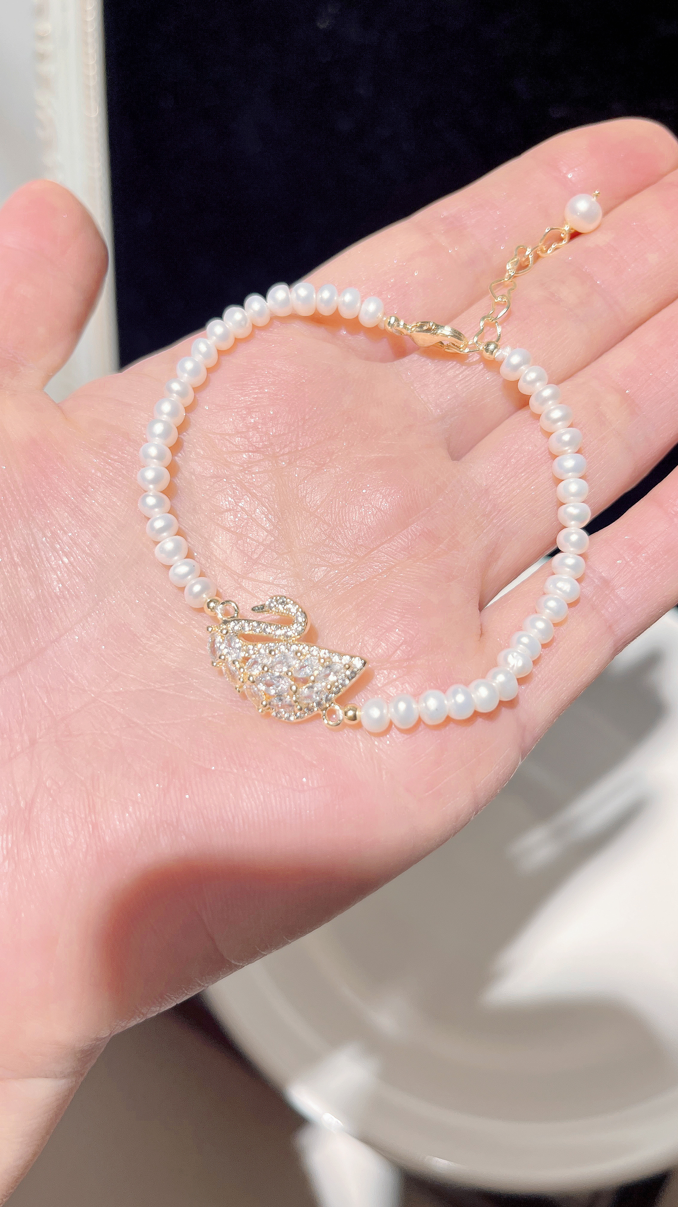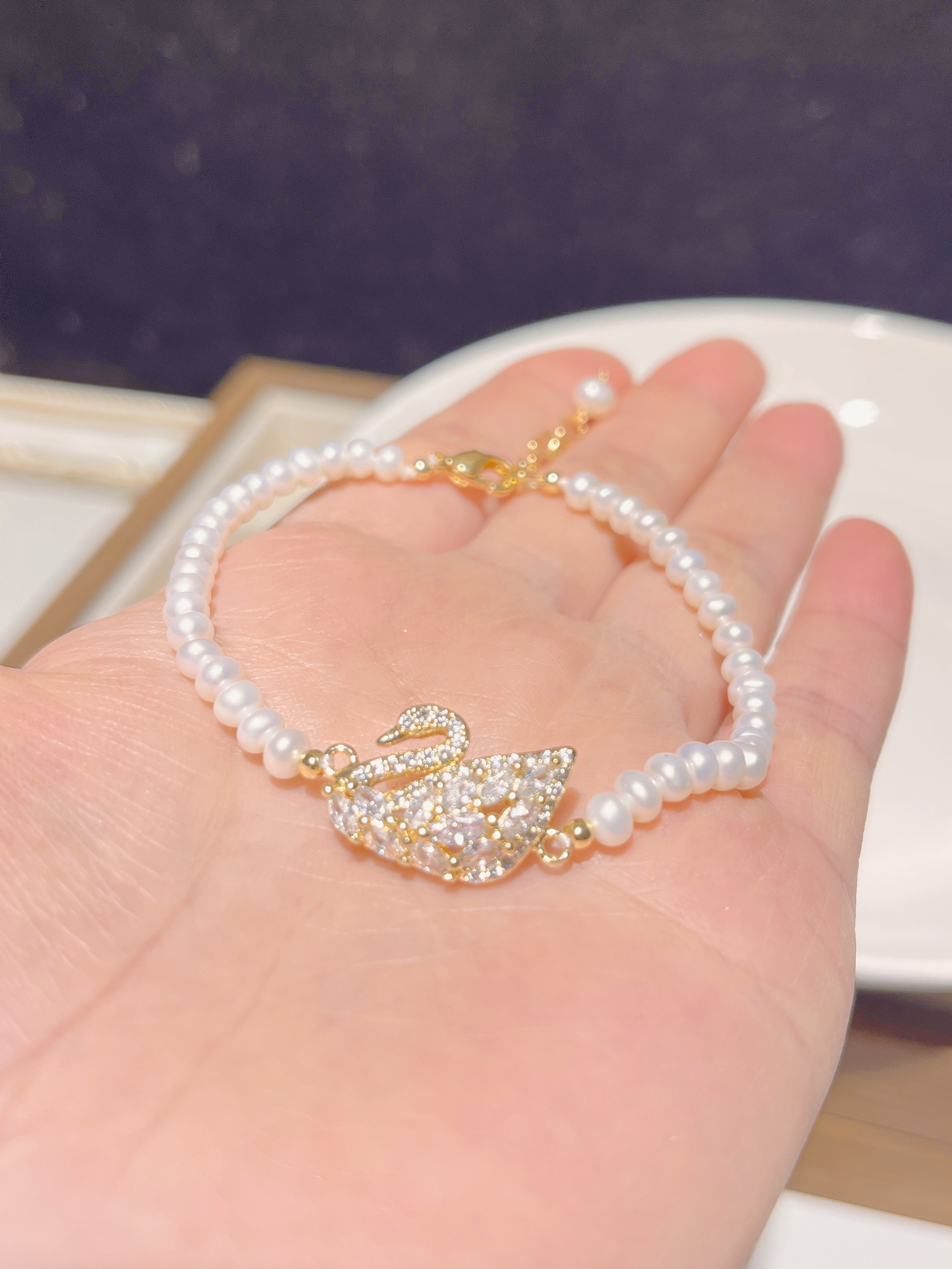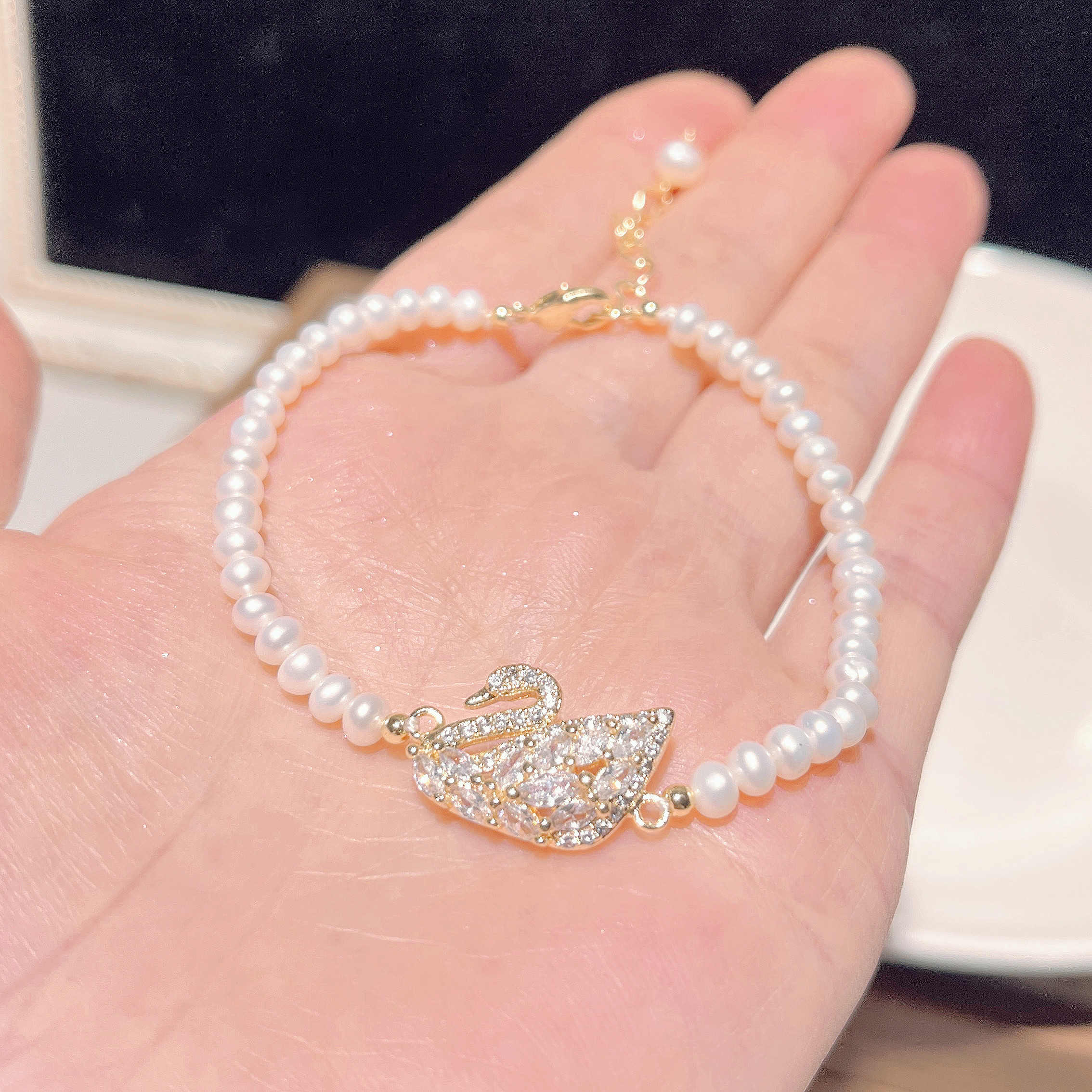 好品质韩国东大门新款满钻天鹅珍珠手链女高级感轻奢小众精致手串