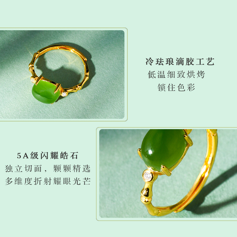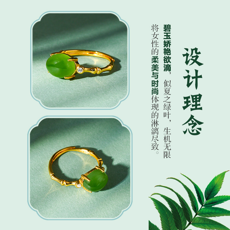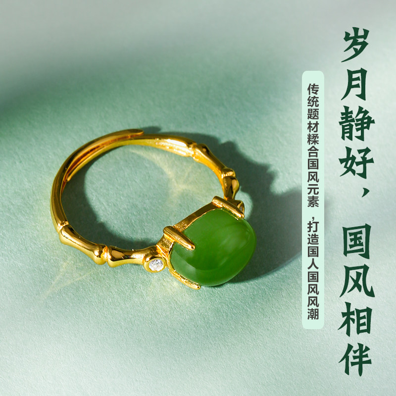 七彩云南和田玉碧玉戒指银镶嵌玉石碧玉戒指玉环送爱人生日礼物