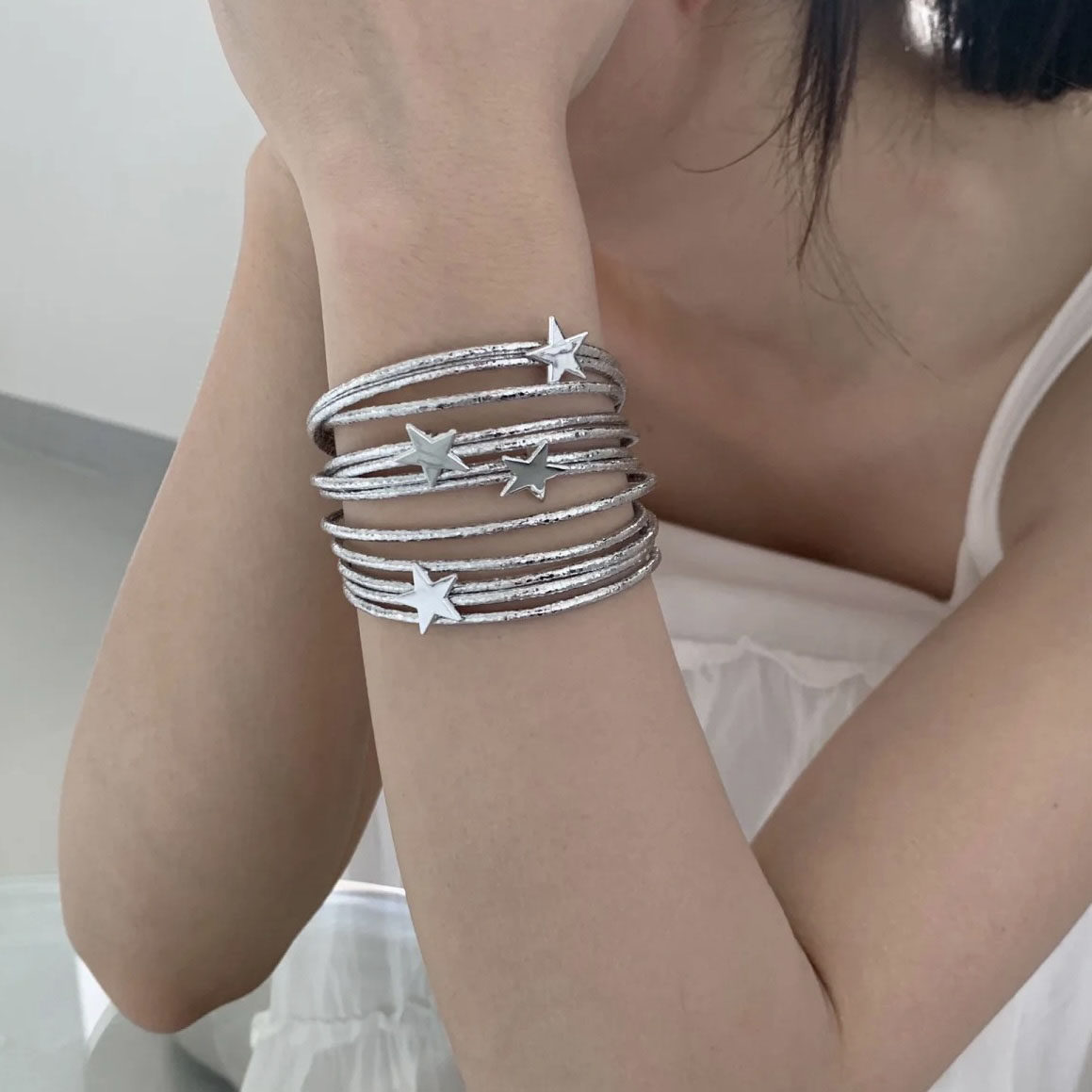 y2k千禧辣妹多层星星手环女嘻哈风亚文化细闪五角星潮酷线条手链