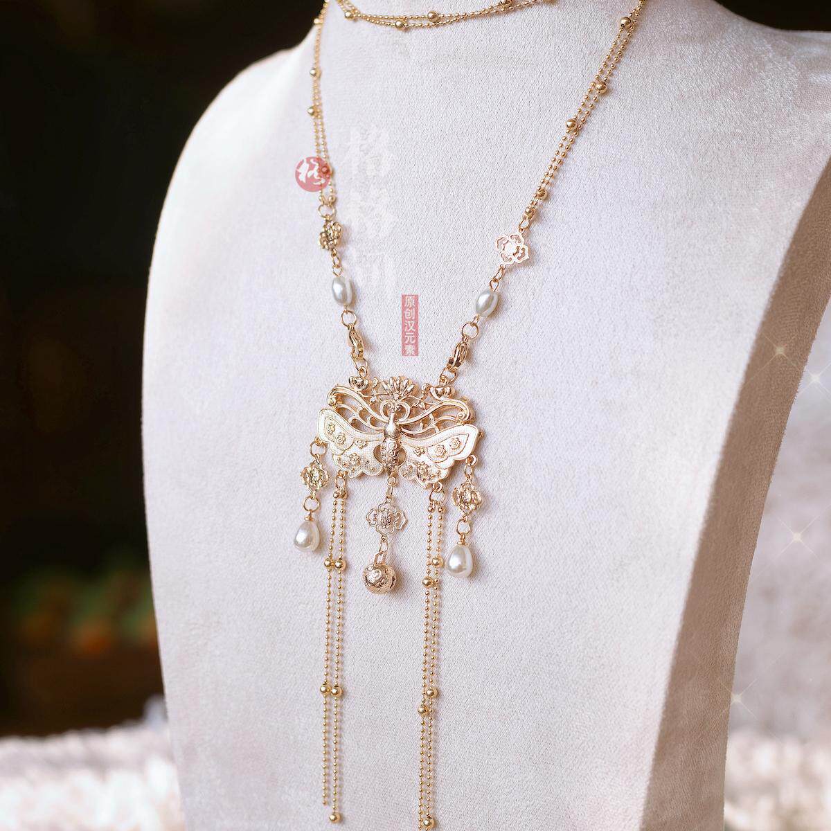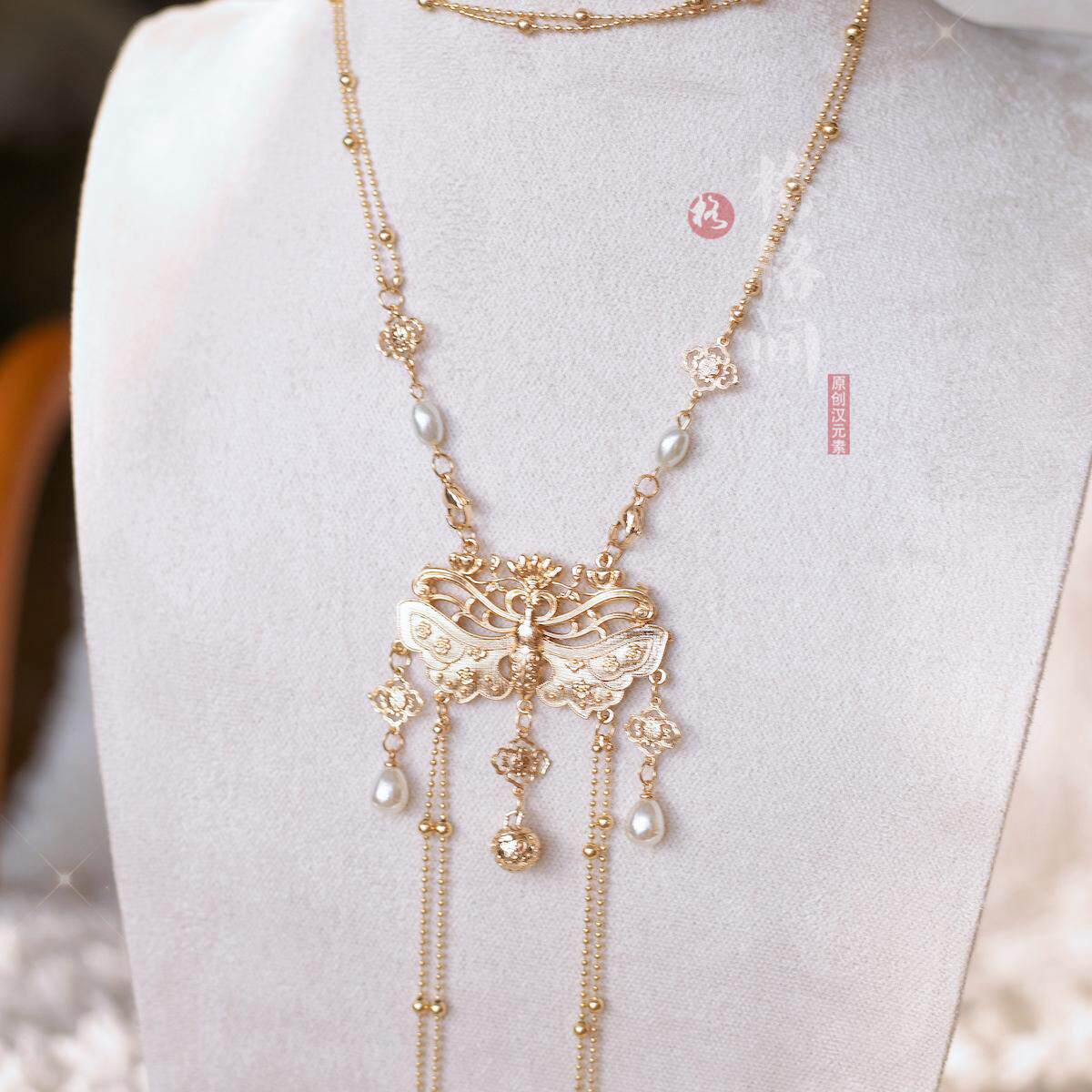 格格间原创【金锁】晚明风平安锁旗袍古风项链女珍珠软璎珞多层