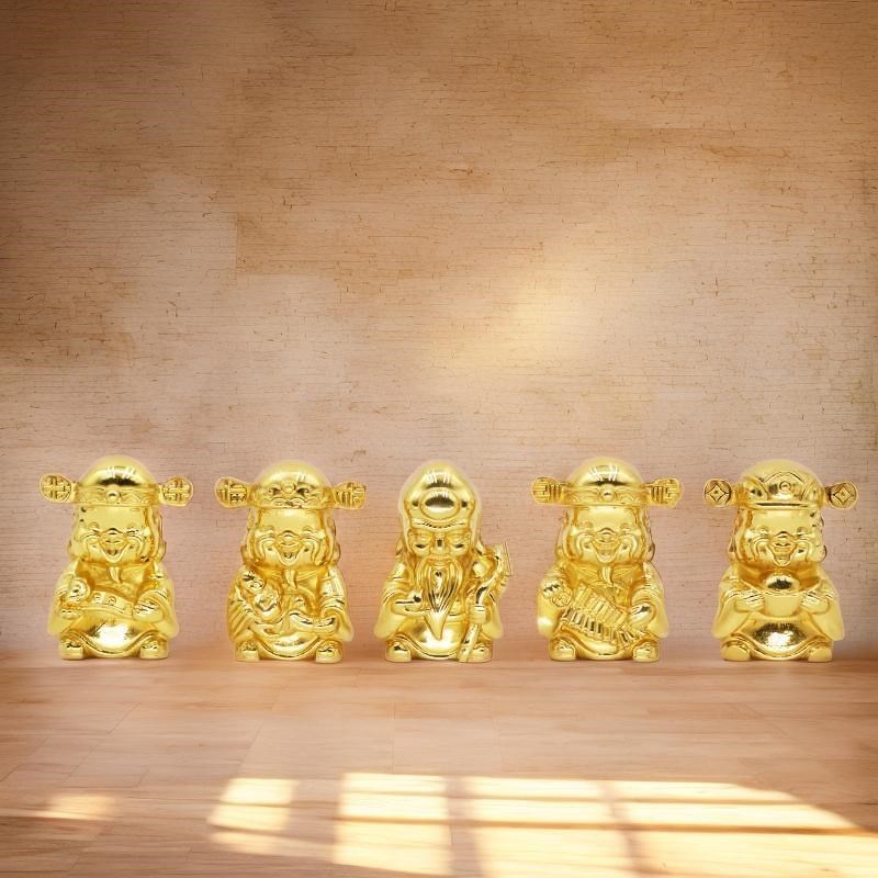 全黄铜萌版小号福禄寿喜财五路财神手把件办公桌面书桌茶台小摆件