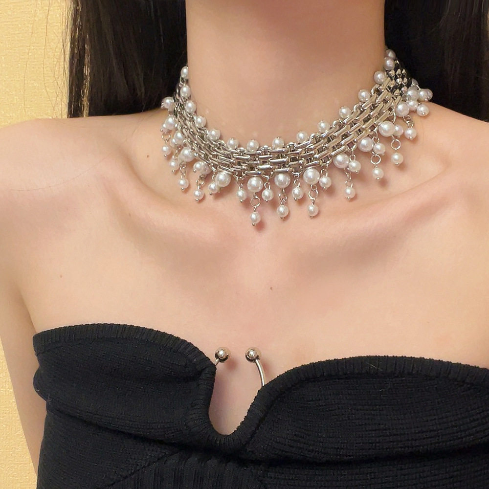 日系CoopKoop欧美时尚风小众设计秀场款项链水晶珍珠吊坠choker