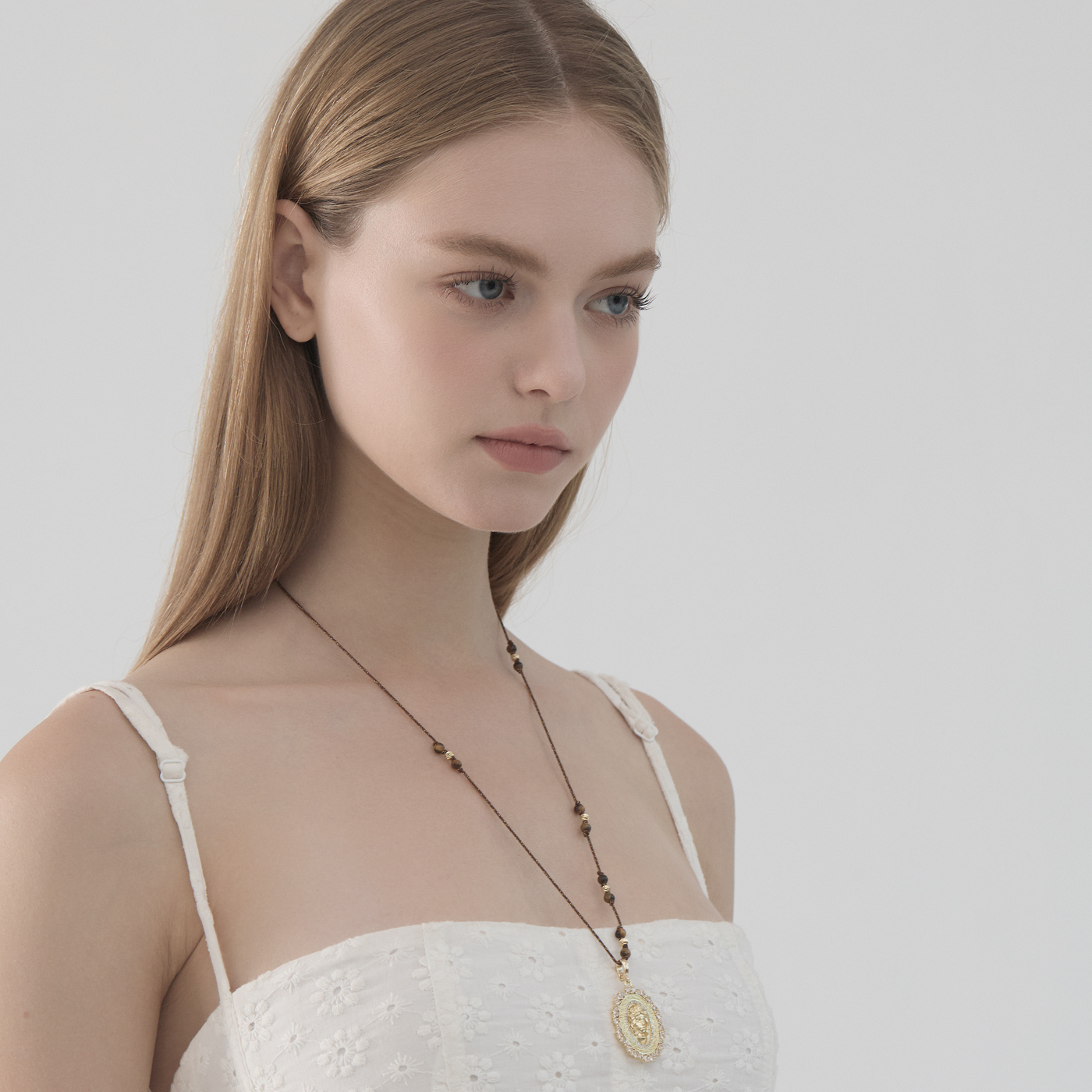BING 原创设计感双层棕色复古金币人像项链 多戴款链长链搭配配饰