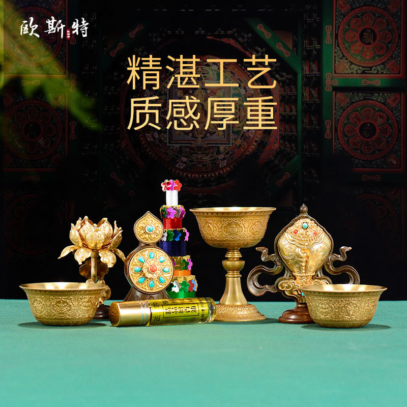 佛前八供套装家居客厅佛具用品八吉祥供水杯海螺朵玛食子香塔摆件