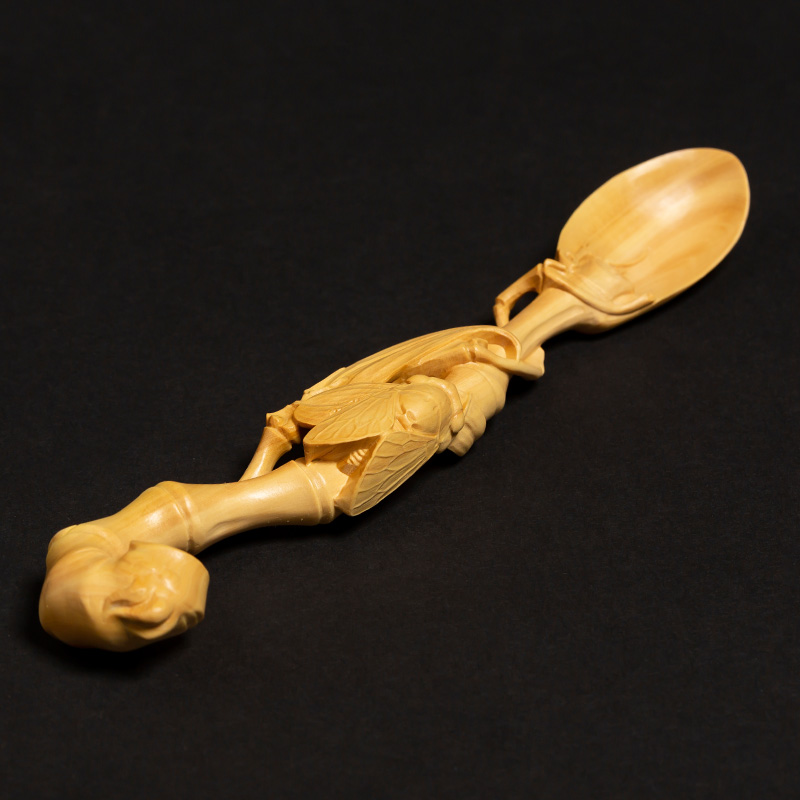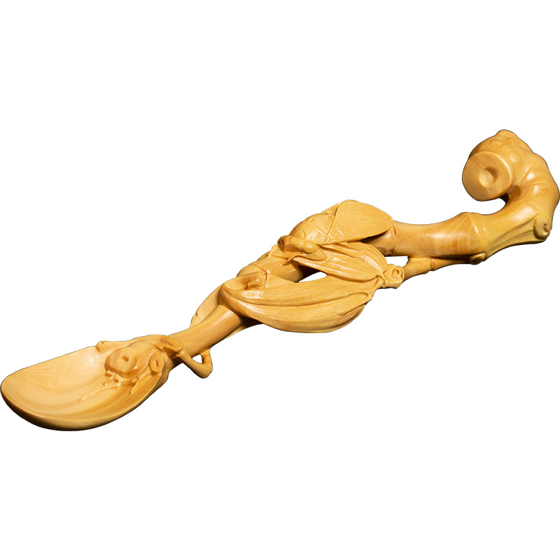 茶匙创意茶铲雕刻工艺品黄杨木雕功夫茶具配件实木手把件金蝉茶勺