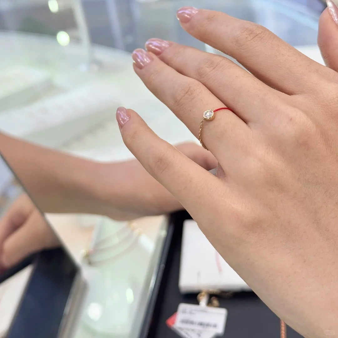 设计师款钻石镶嵌小红绳戒指女精致轻奢红色绳结素圈指环不掉色