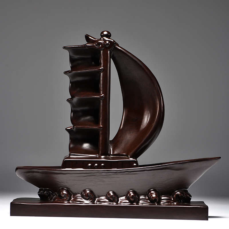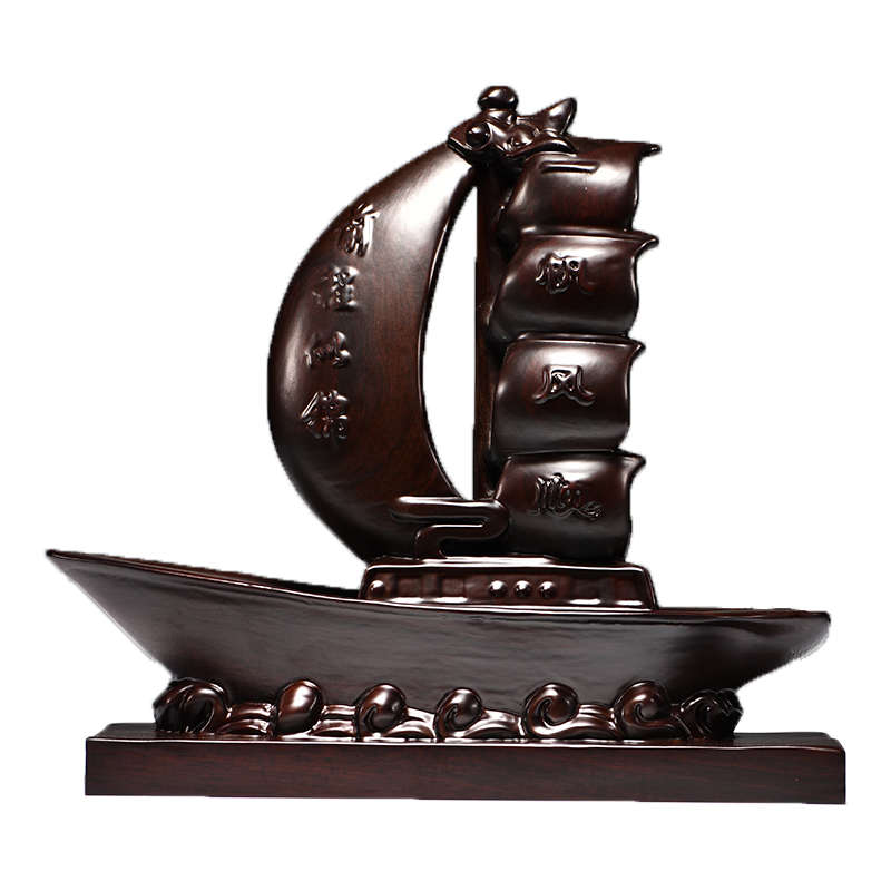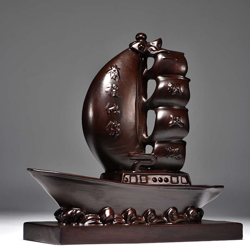 一帆风顺帆船摆件实木头船黑檀木雕大船木质船模型家居办公室送