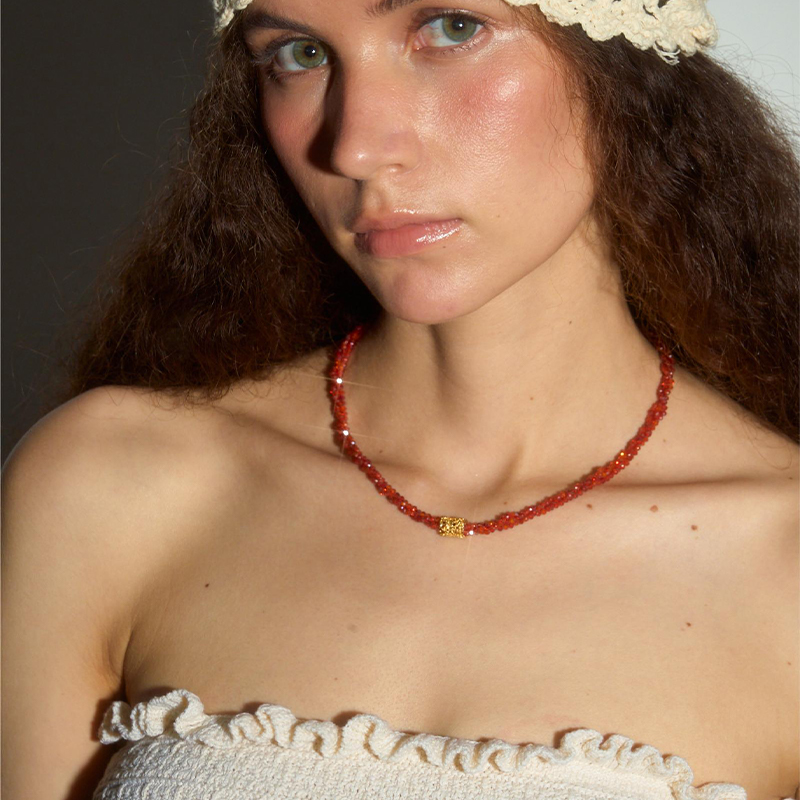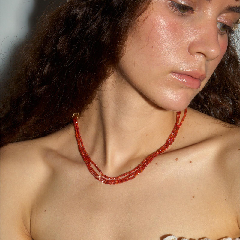 DINN DINN DESIGN三层红色串珠项链颈链个性小众简约高级感轻奢