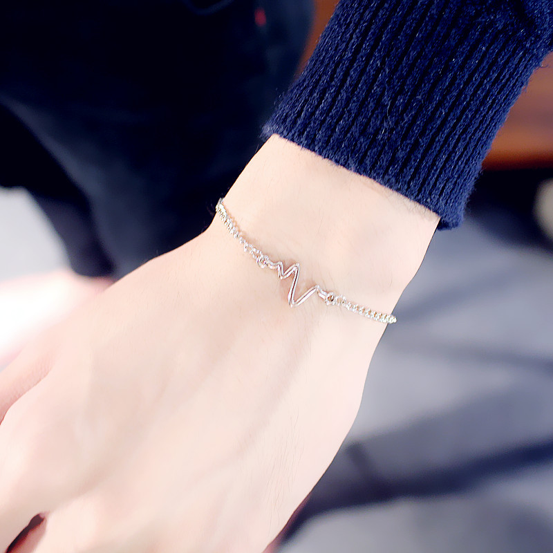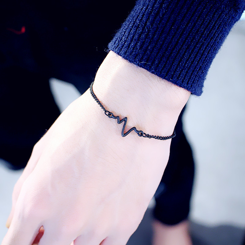 韩国潮牌复古原宿街头风格潮流黑色心电图男女生创意情侣手链手环