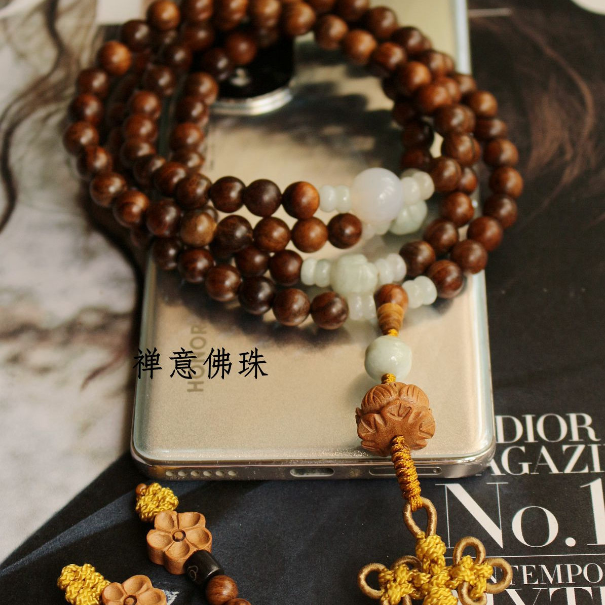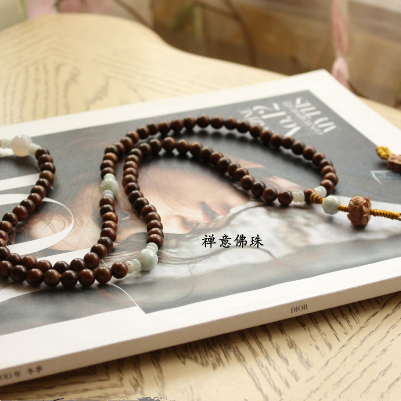 禅意●佛珠挂串花梨木搭配天然翡翠玛瑙黑檀桃木配饰项链独家设计