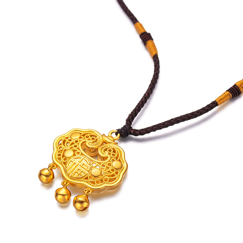 越南沙金锁项链女如意长命锁吊坠古法镀黄金色镂空福字礼物首饰