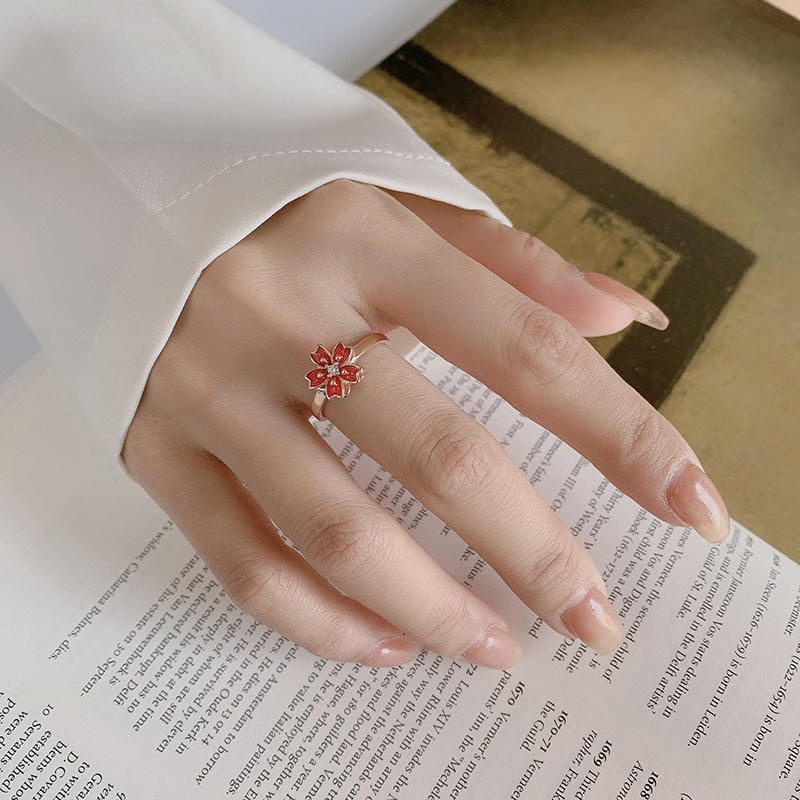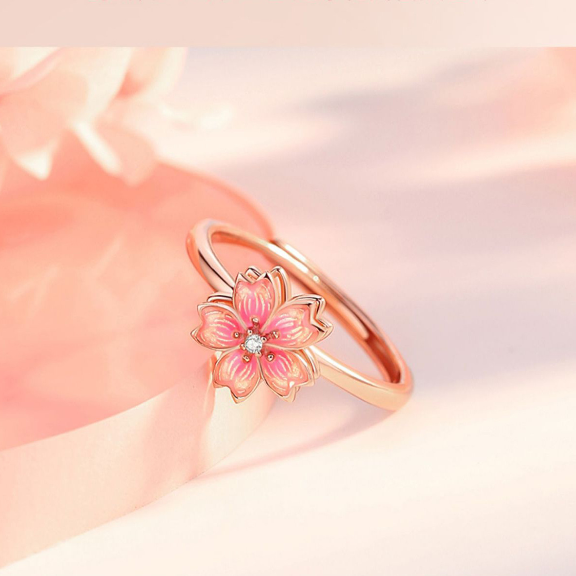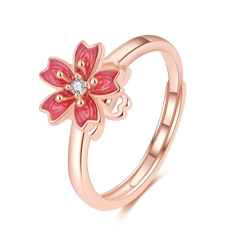 灵动的桃花戒指女设计感三生三世十里桃花珐琅可旋转开口可调节