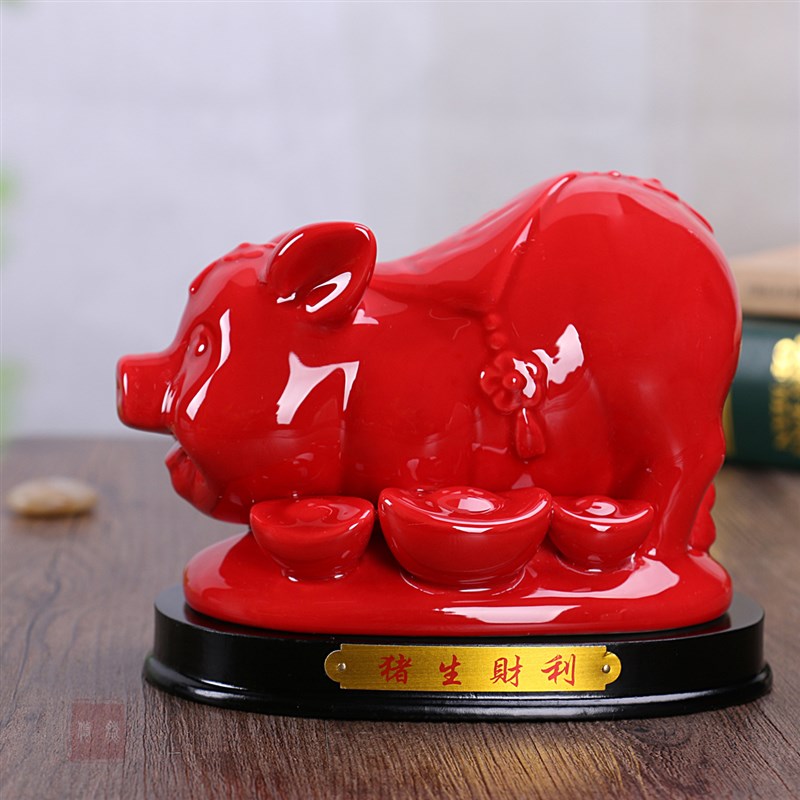 陶瓷生肖动物招财红色猪摆件风水家居饰品办公简约现代工艺品摆设