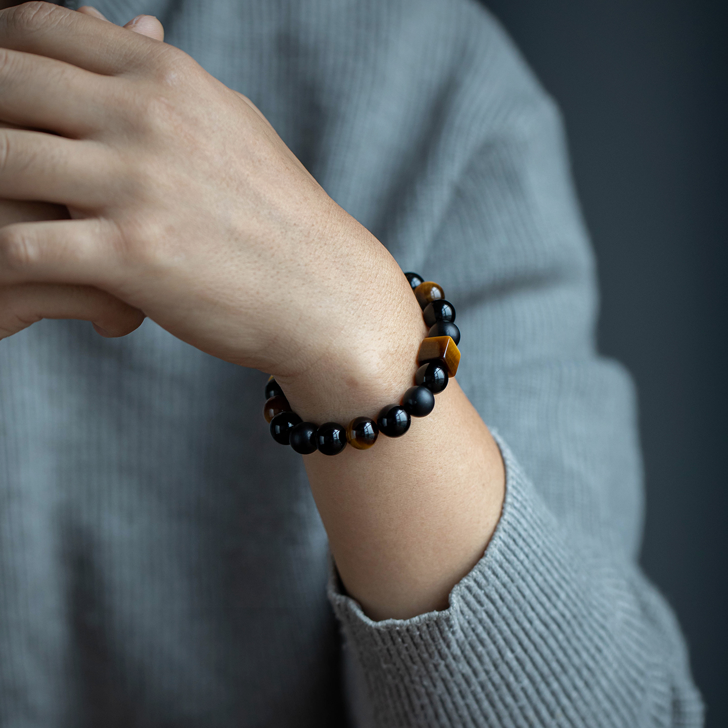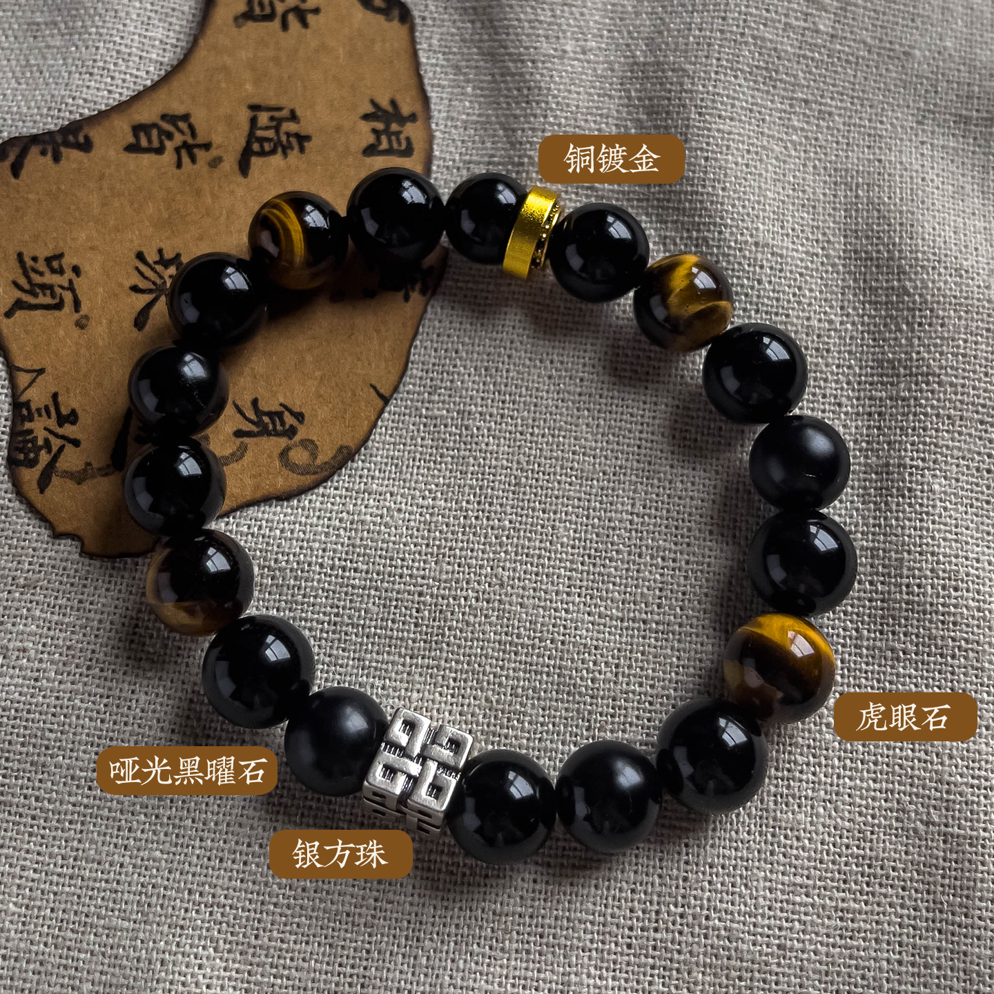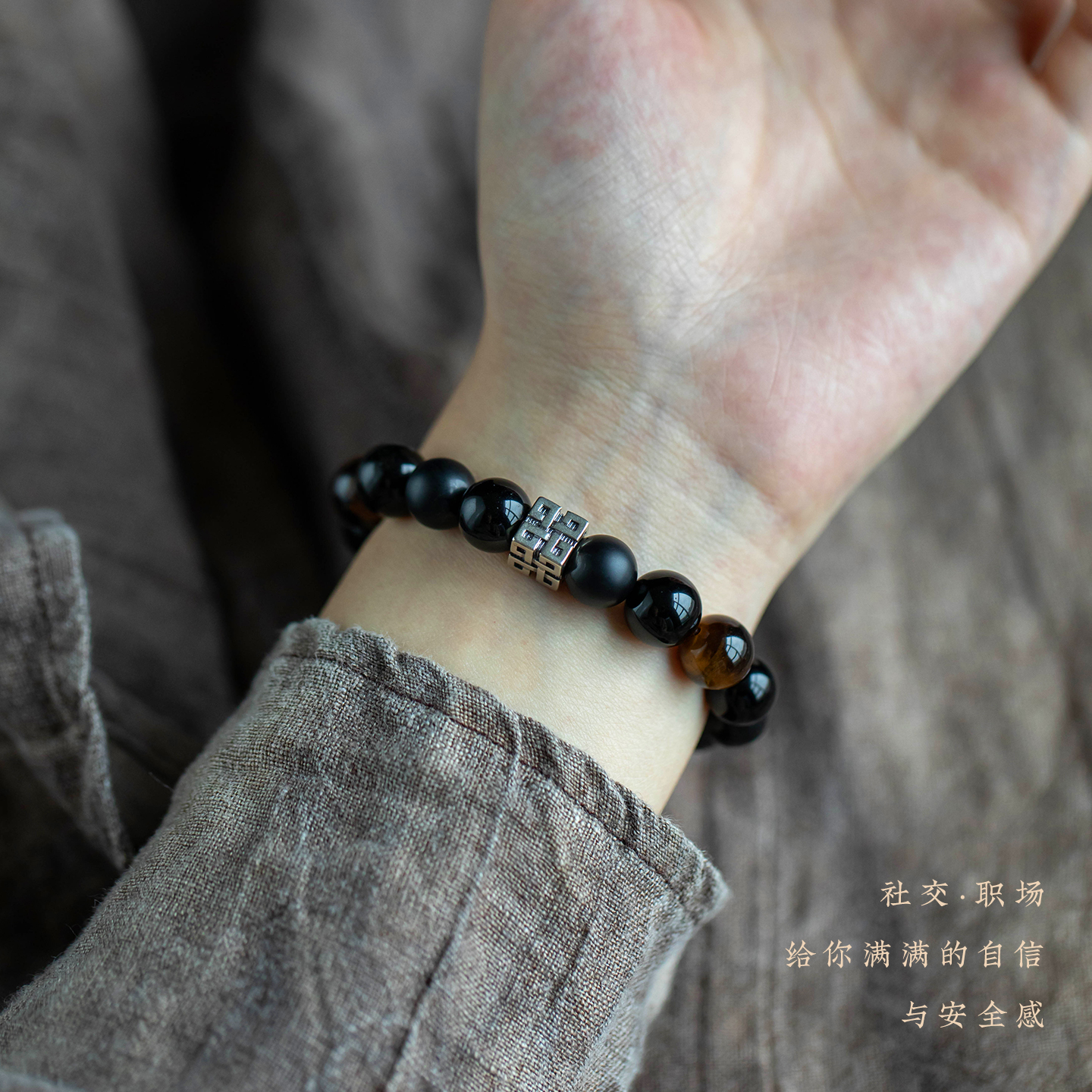 天然黑曜石手串男士招财转运虎眼石手链能量石手串转运珠串珠礼物