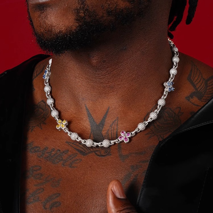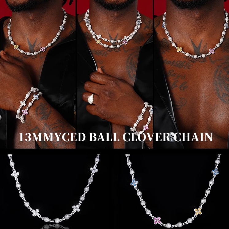 NICEPOWER 13mm Iced Ball Clover Chain 四叶草冰珠满钻项链