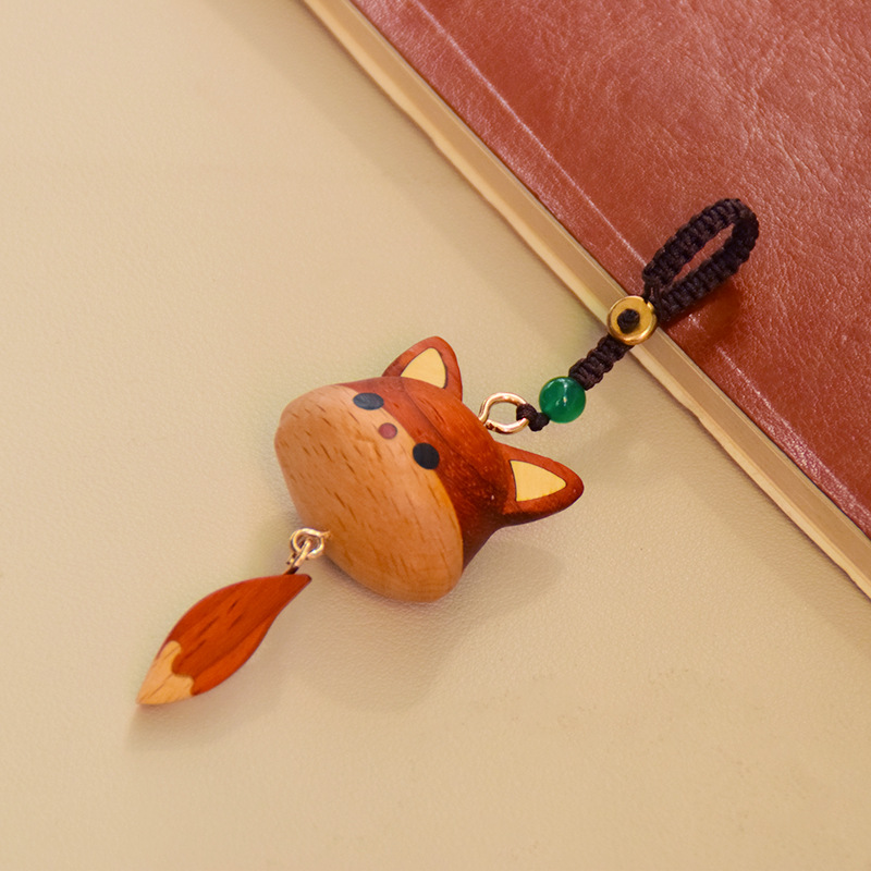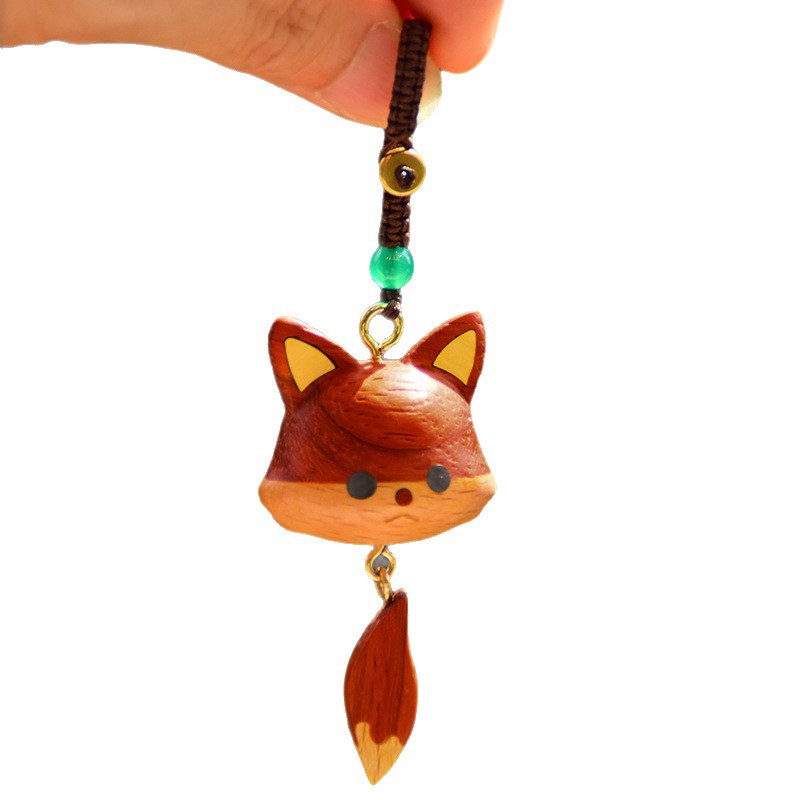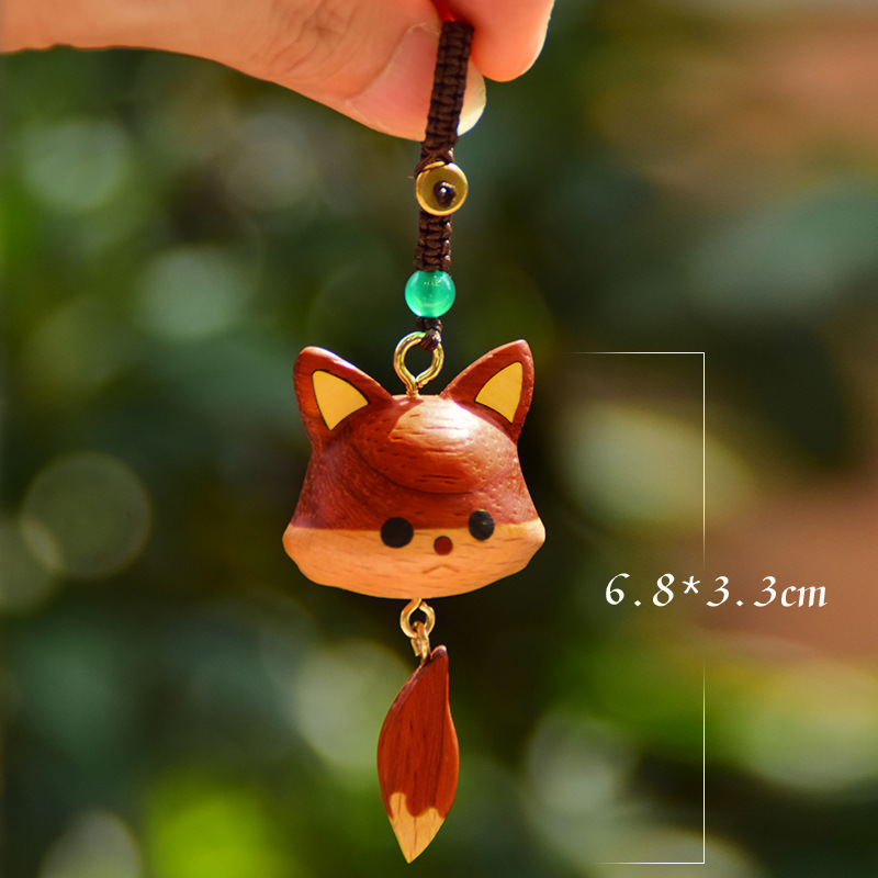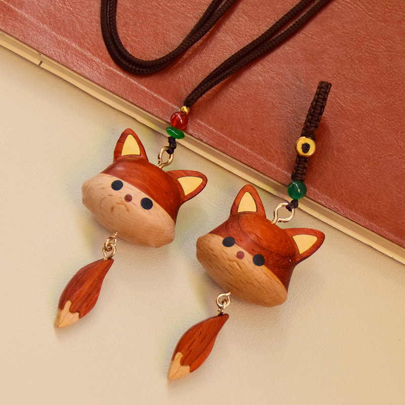 实木可爱小龙猫小狐狸项链钥匙扣胡桃木挂件动漫创意文玩饰品礼物