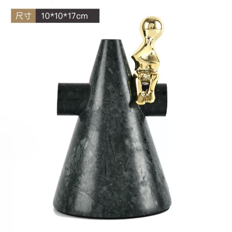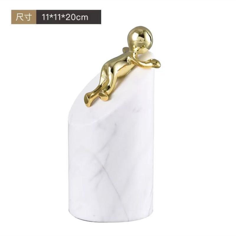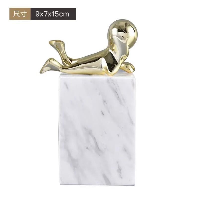 样板间轻奢大理石装饰品摆件金色小铜人酒店客厅书柜玄关软装饰品