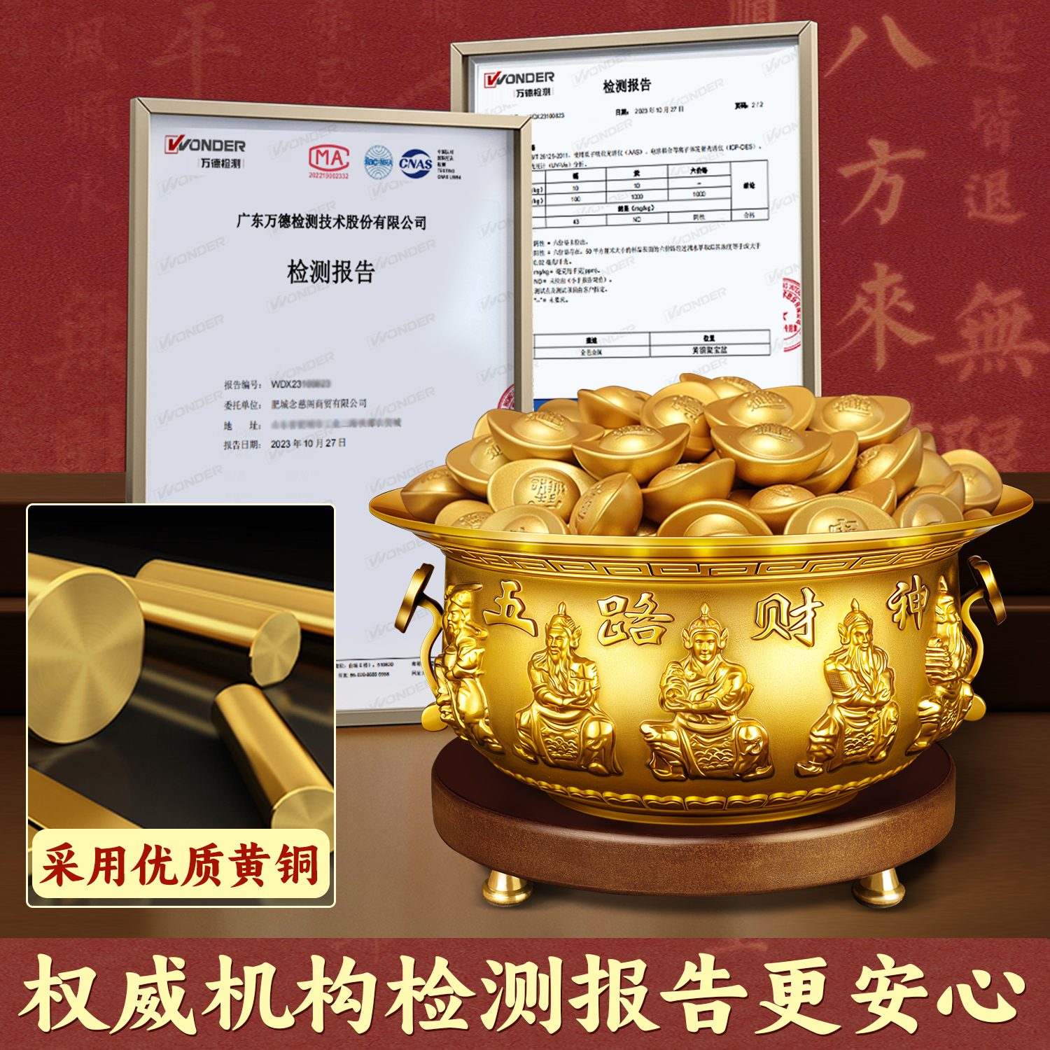 五路财神聚宝盆招财聚财摆件纯铜八方来财黄铜沙金元宝2025新款