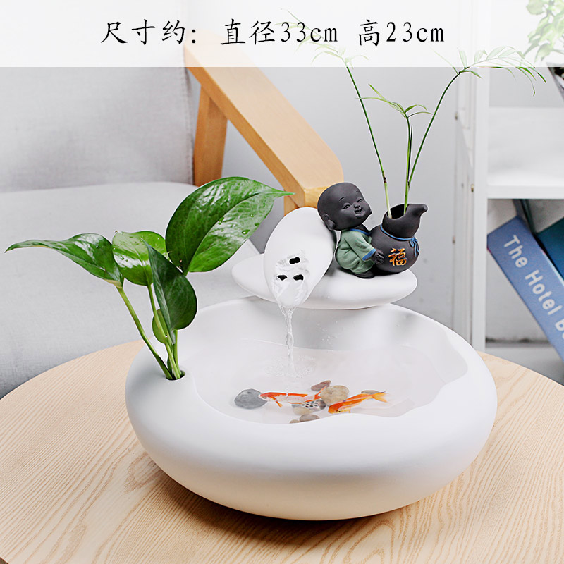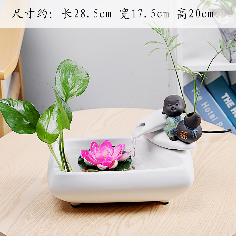 陶瓷流水摆件循环招财鱼缸加湿器B客厅家居办公室桌面水景喷泉装