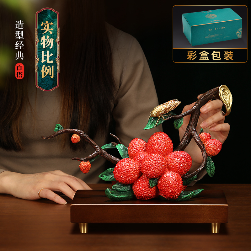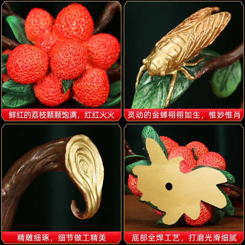 吉善缘《名利双收》铜荔枝摆件 客厅桌面招财家居装饰工艺品A0017