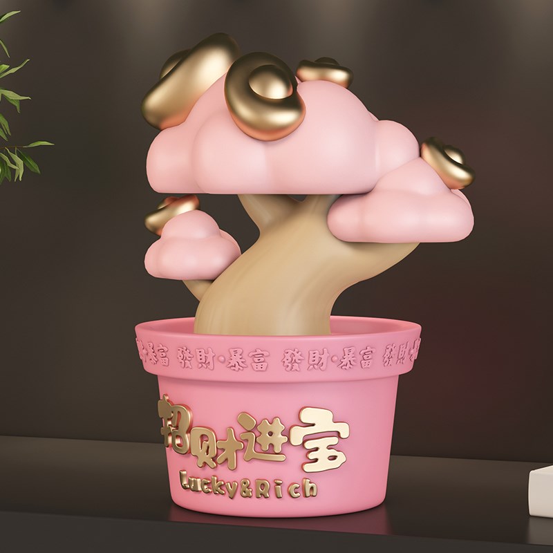 发财树摆件存钱罐客厅玄关办公桌装饰高级感小众开业礼物