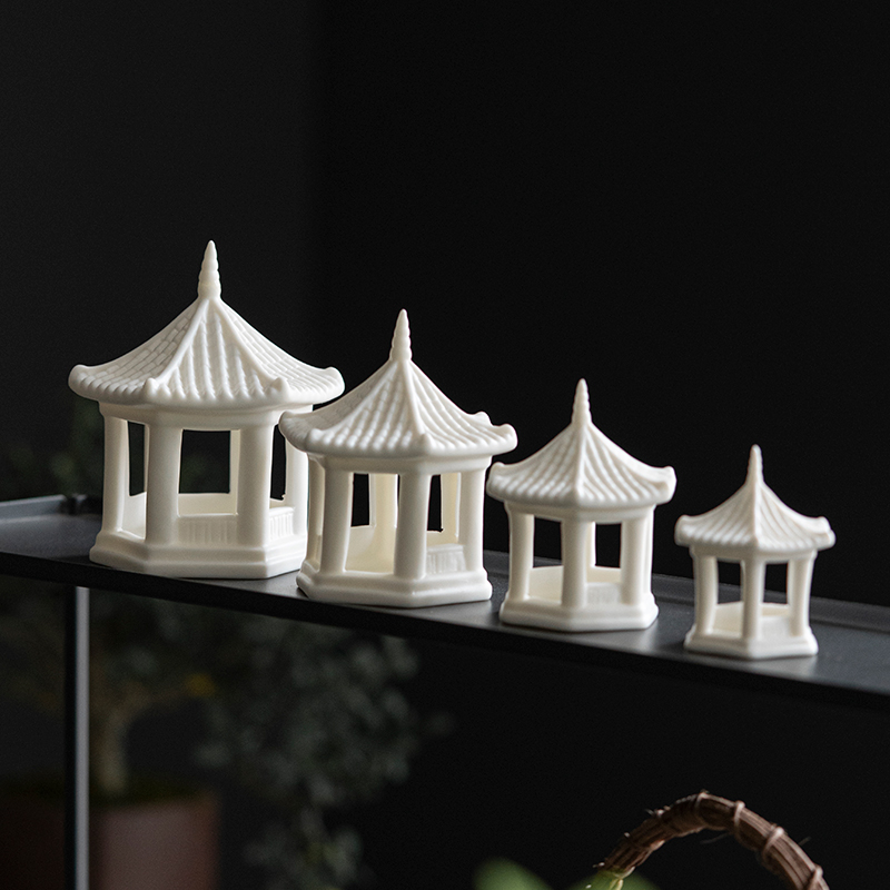 德化陶瓷花艺摆件枯山水沙盘鱼缸流水造景古建筑物凉亭装饰品配件