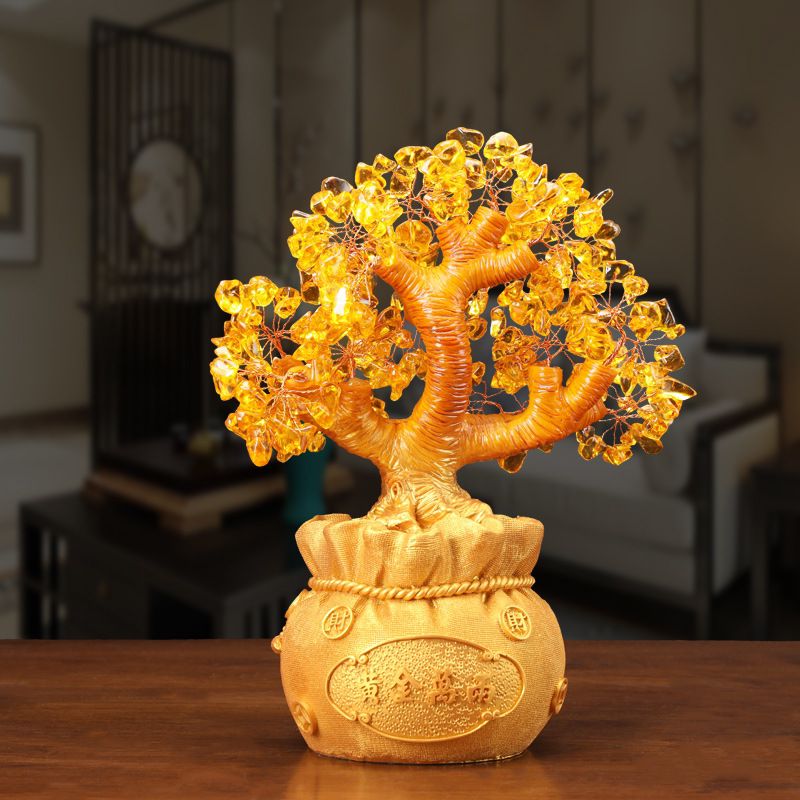 黄水晶摇钱招财树发财树钱袋摆件家居酒柜装饰工艺品乔迁开业礼品