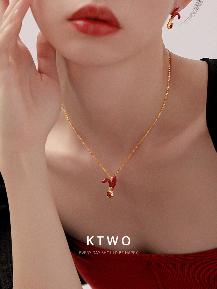 兔年项链女款高级设计感小众镀k金轻奢锆石爱心本命年礼物锁骨链