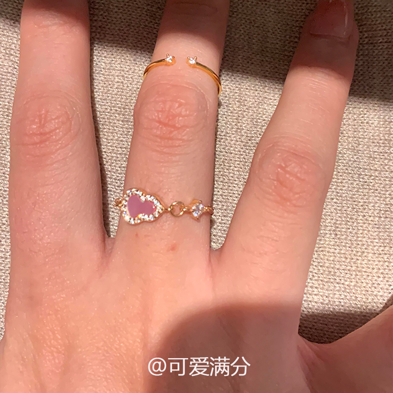 新中式泡泡钻粉色福禄葫芦戒指简约可爱甜美抽拉食指戒女款高级感