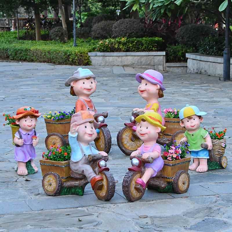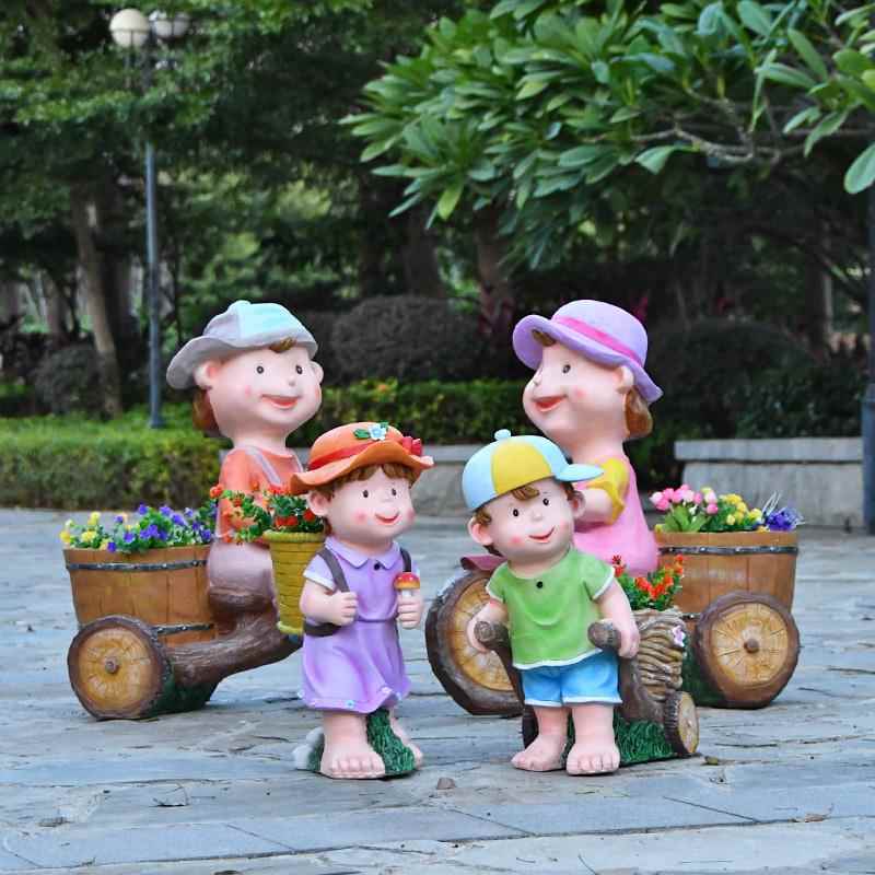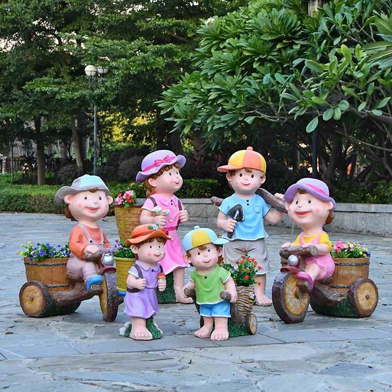 户外别墅小区创意美式乡村小孩原创花园庭院装饰卡通人物花缸摆件