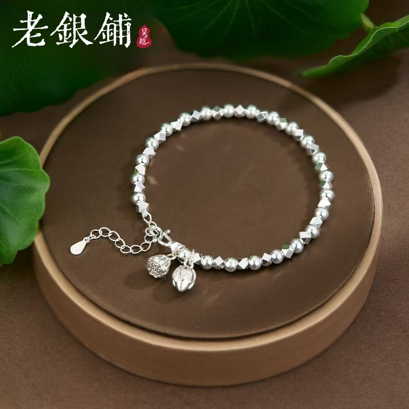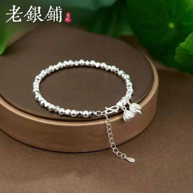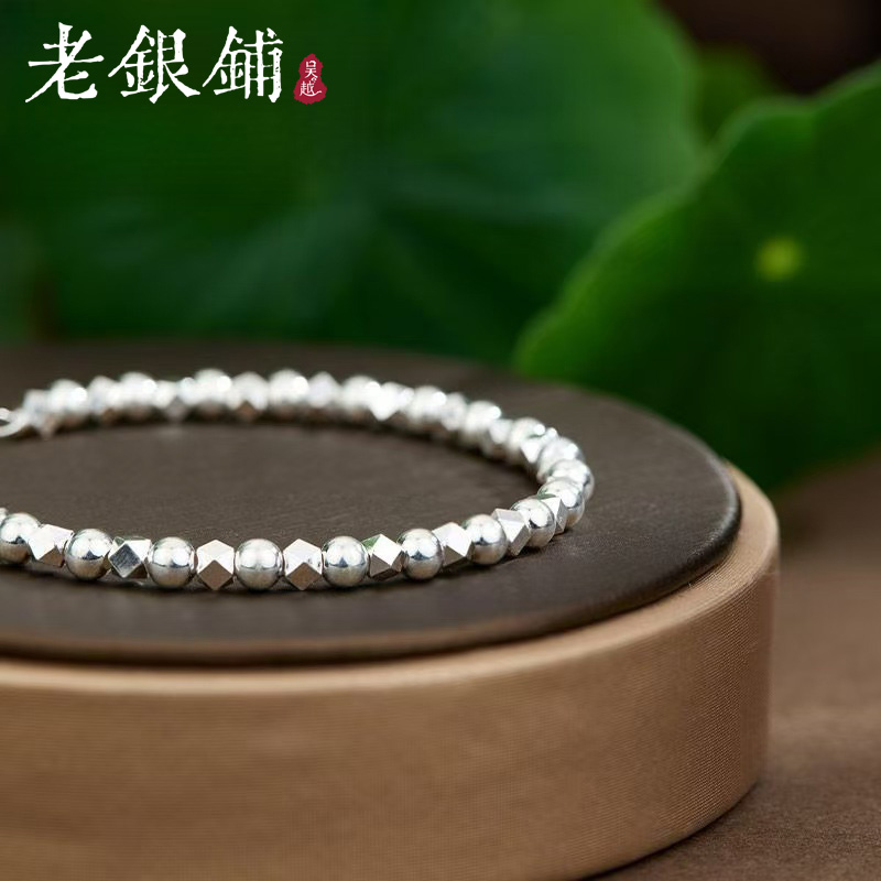 吴越老银铺正品999心犀手链纯银串珠时尚手串简约百搭礼物送女友