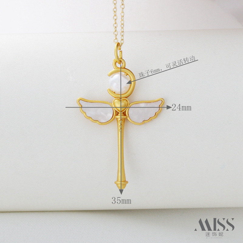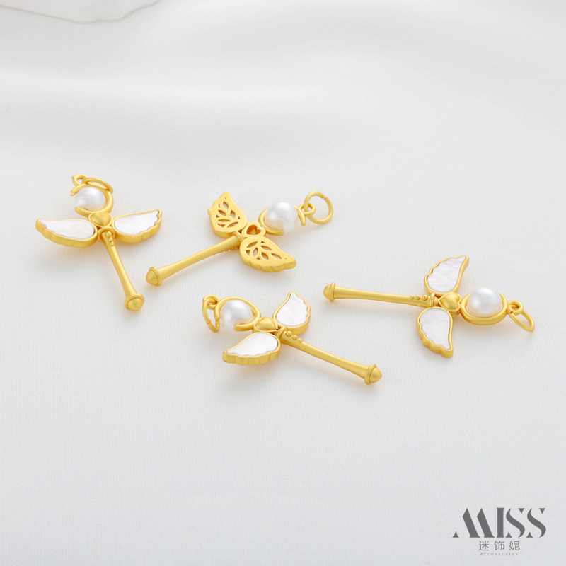 18K包金保色哑金镶嵌白贝仙女棒天使之翼吊坠diy珍珠项链挂坠配件