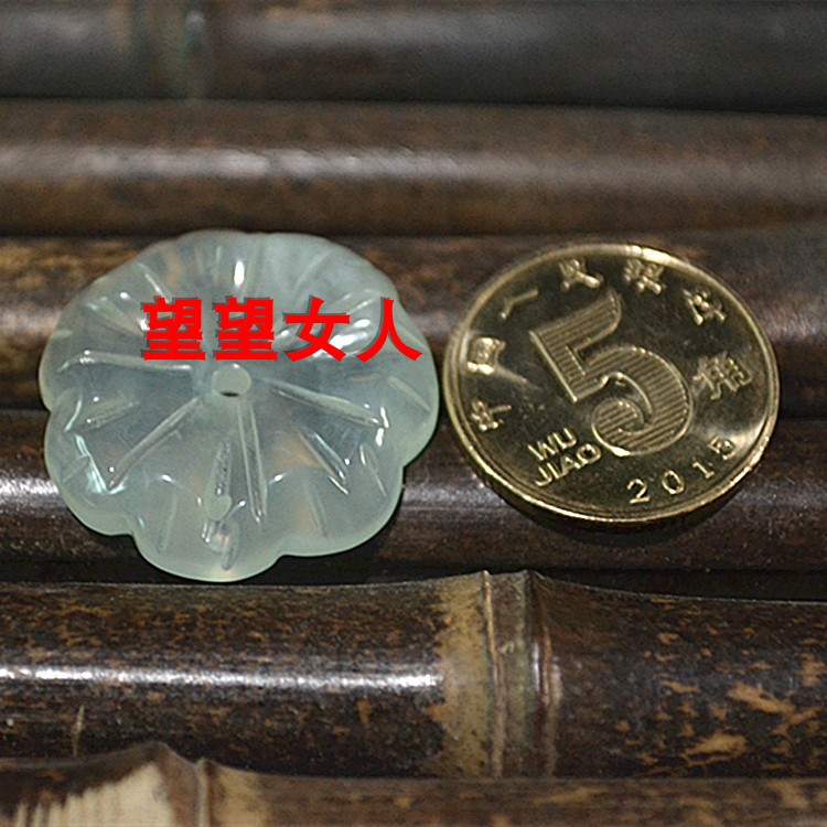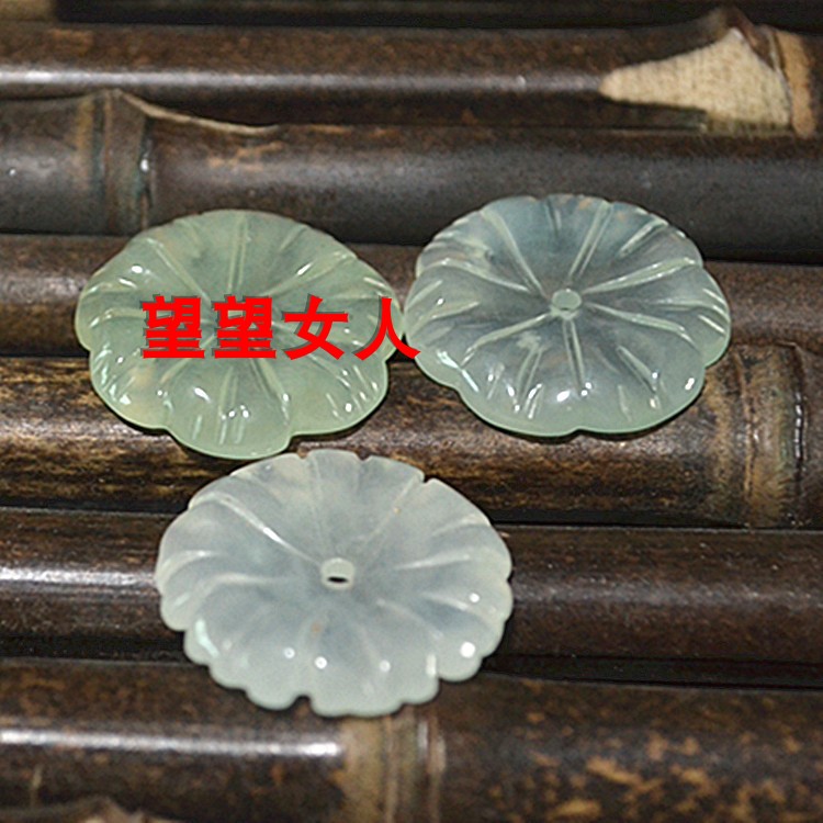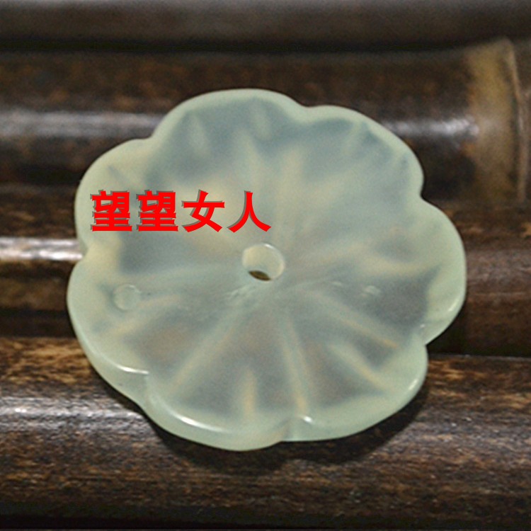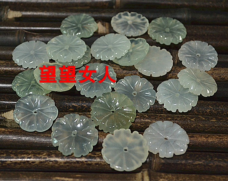 天然岫玉菊花型吊坠玉石小菊花挂件玉雕七瓣花项链手链diy配件