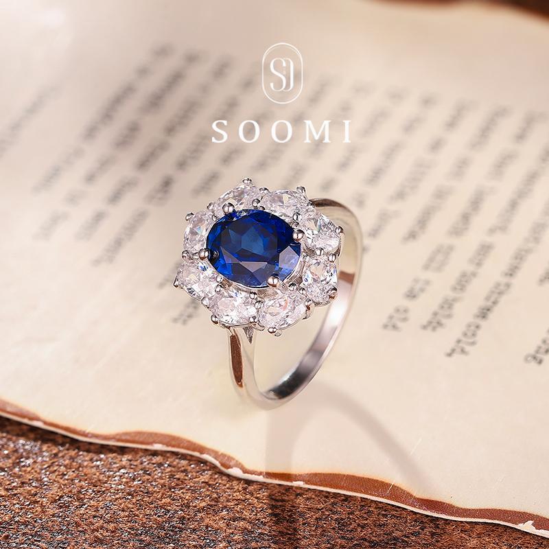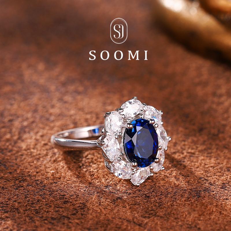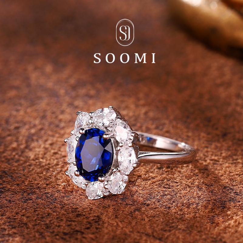 [SOOMI诗意]925银2.6克拉实验室培育皇家蓝宝石戒指高端大气戒子