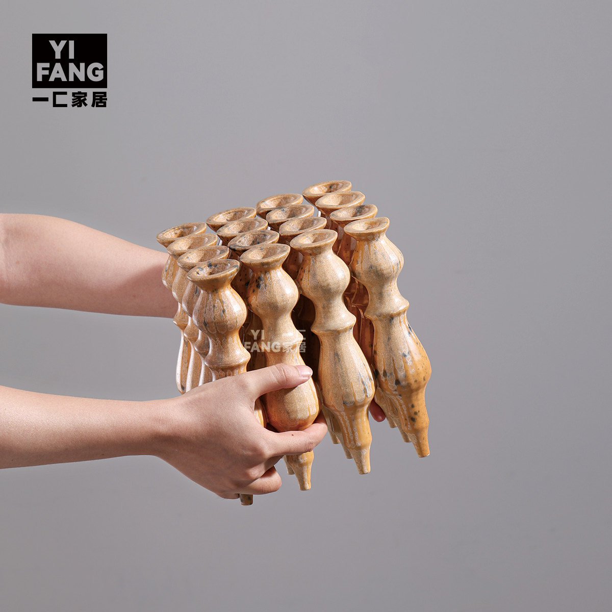 一匚 中古风豆荚形创意陶瓷花器 样板间售楼处客厅桌软装摆件