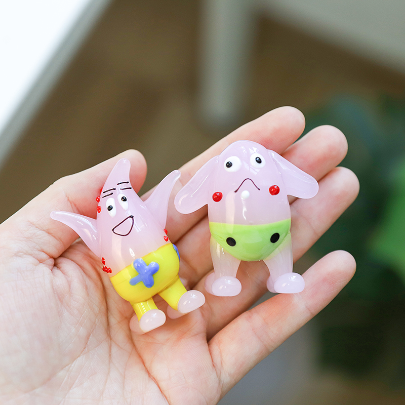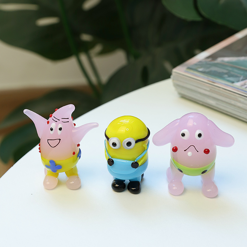 迷你可爱派大星小黄鸡小黄人长颈鹿玻璃摆件桌面卡通日式动画摆件