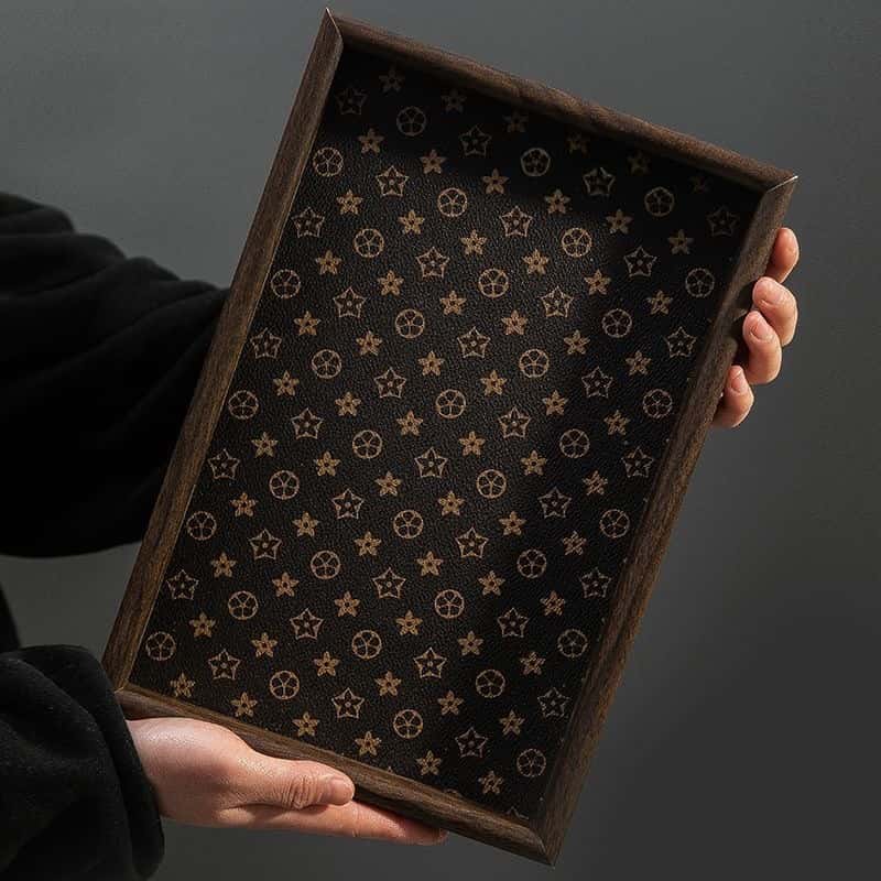 中古复古长方形桌面家用首饰摆件钥匙玄关收纳盒轻奢皮革茶盘托盘