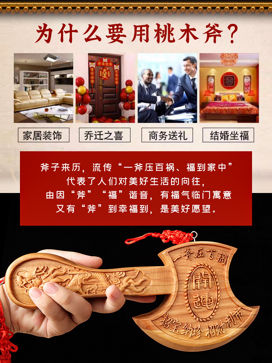 乔迁新居桃木斧头新房实用搬家用的送礼品高档大气小斧子结婚创意
