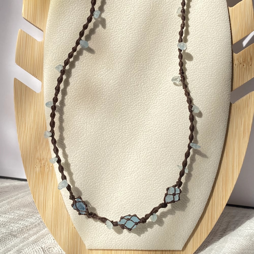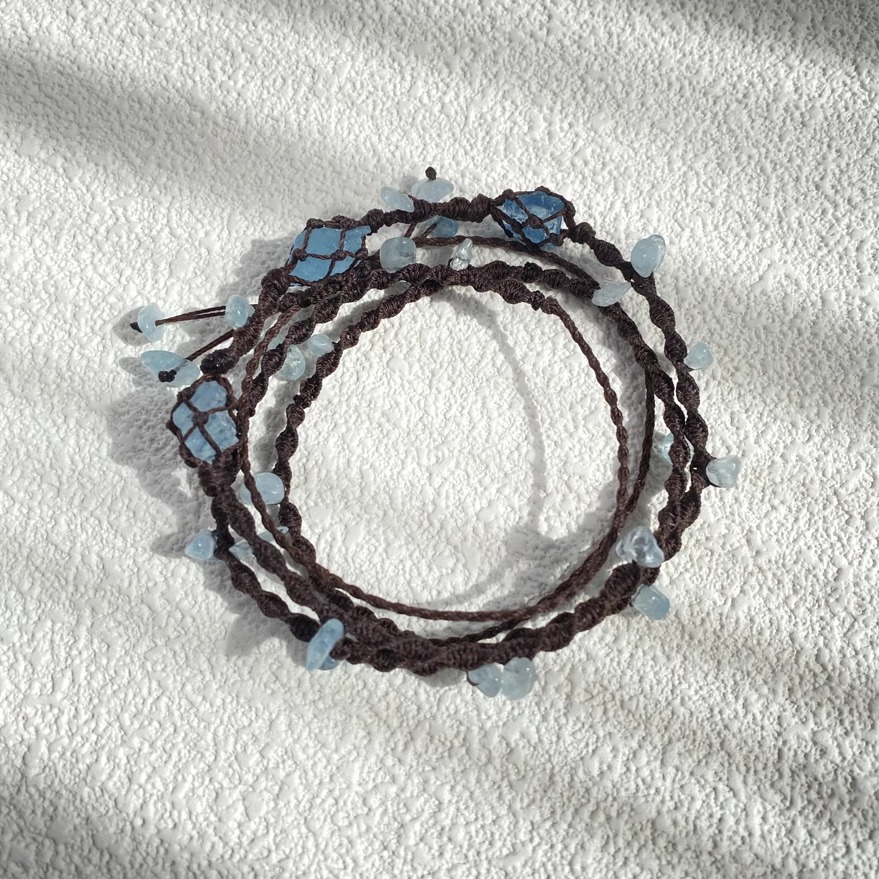 macrame手工海蓝宝原石手绳原创高颜值闺蜜情侣小众水晶叠戴手链
