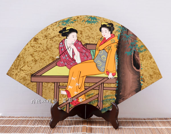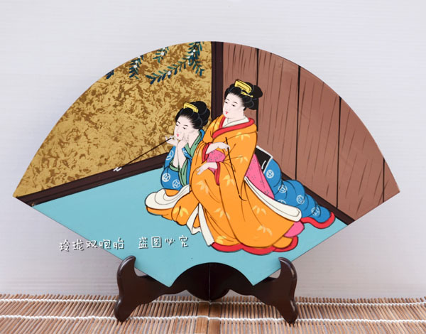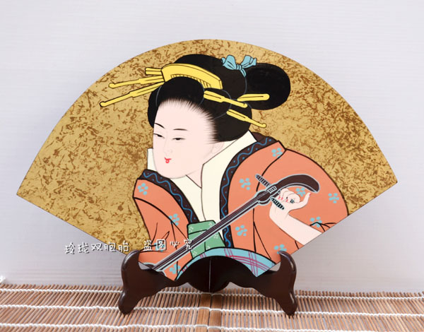 日本榻榻米装修工艺摆件 日本仕女图 装饰漆画 扇形 多款可款