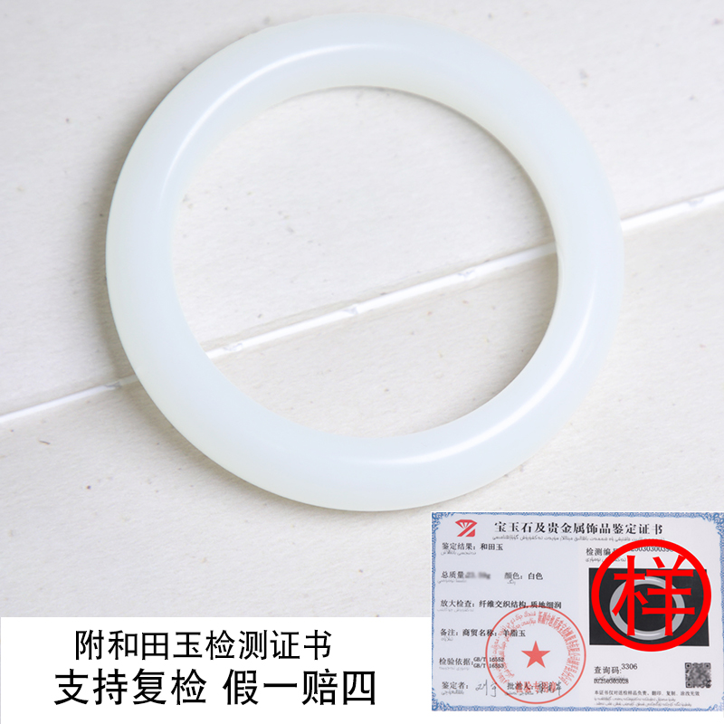 珪宝和田玉羊脂玉手镯女款山流水玉镯子天然玉石带证书礼物58.5mm