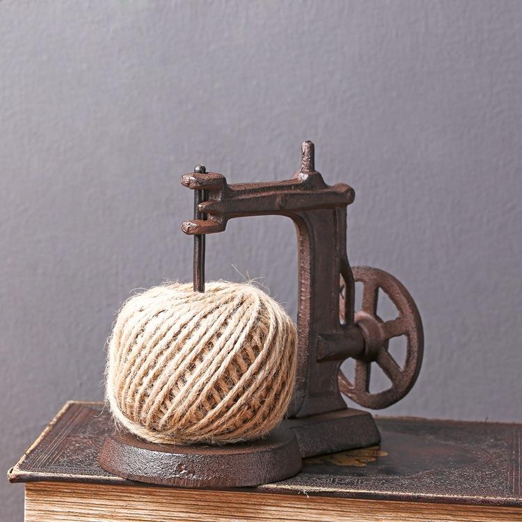 怀旧复古乡村老式缝纫机铁艺模型摆件服饰店摆设含麻绳收纳架