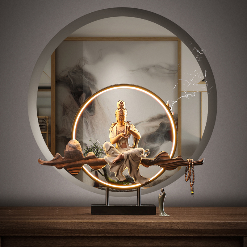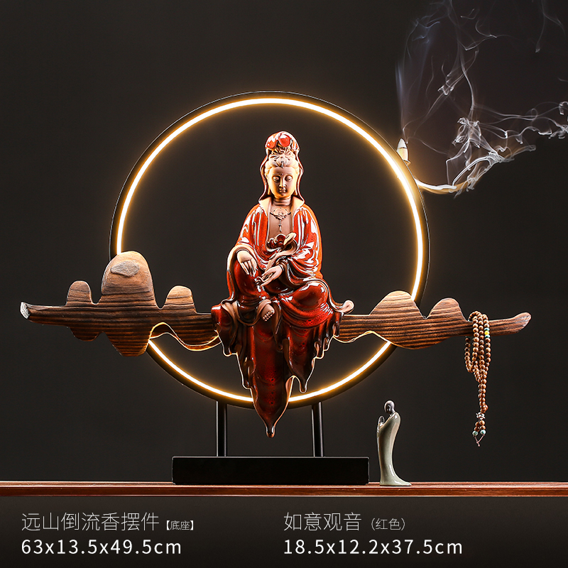 新中式大灯圈观世音禅意摆件客厅玄关创意倒流香装饰招财开业礼品