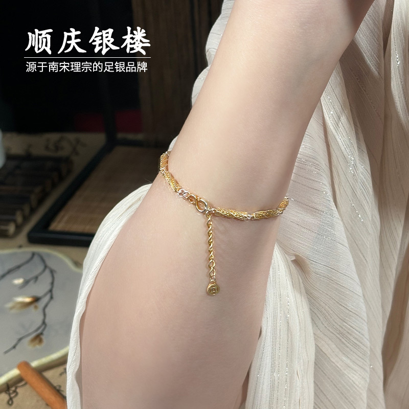 顺庆银楼足银9999纯银手链女款麦穗招财手链新中式国风送女友礼物