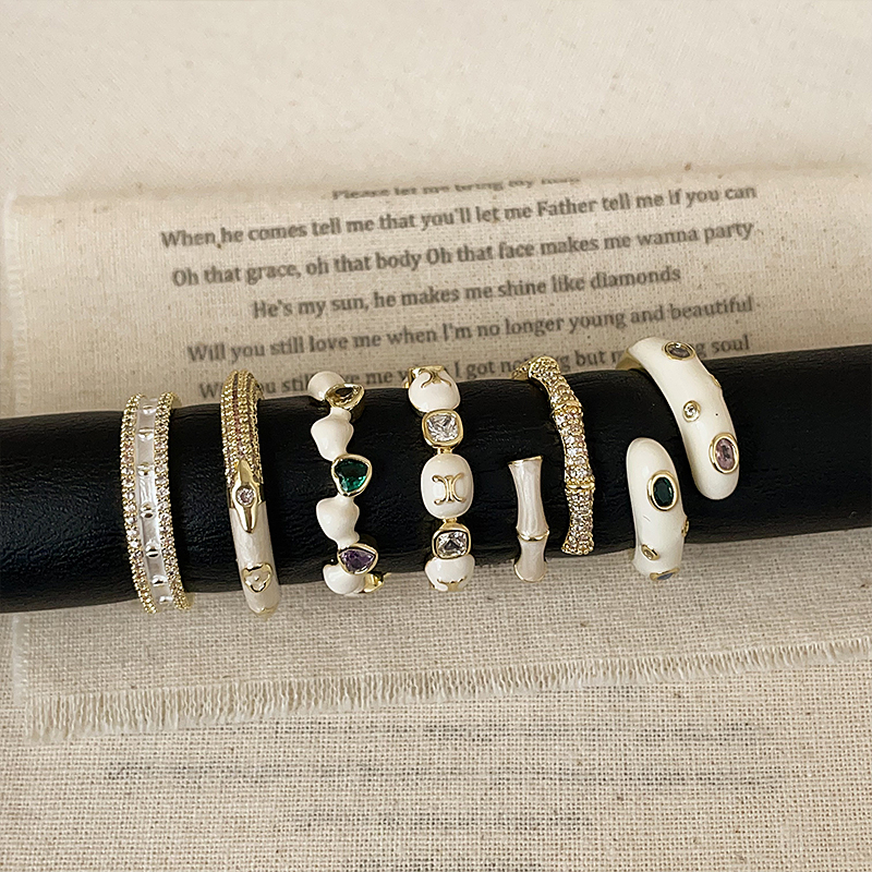 法式高级感流光白滴油彩钻开口戒指轻奢优雅时尚气质百搭指环戒子
