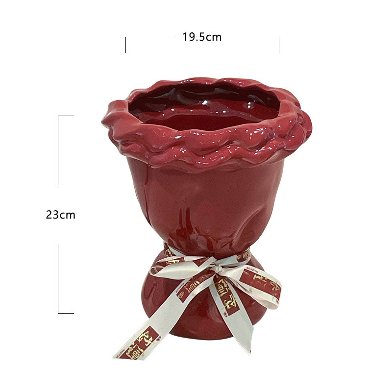 陶瓷花瓶家居红色客厅装饰品摆件高级感高颜值干花水培花束插花器